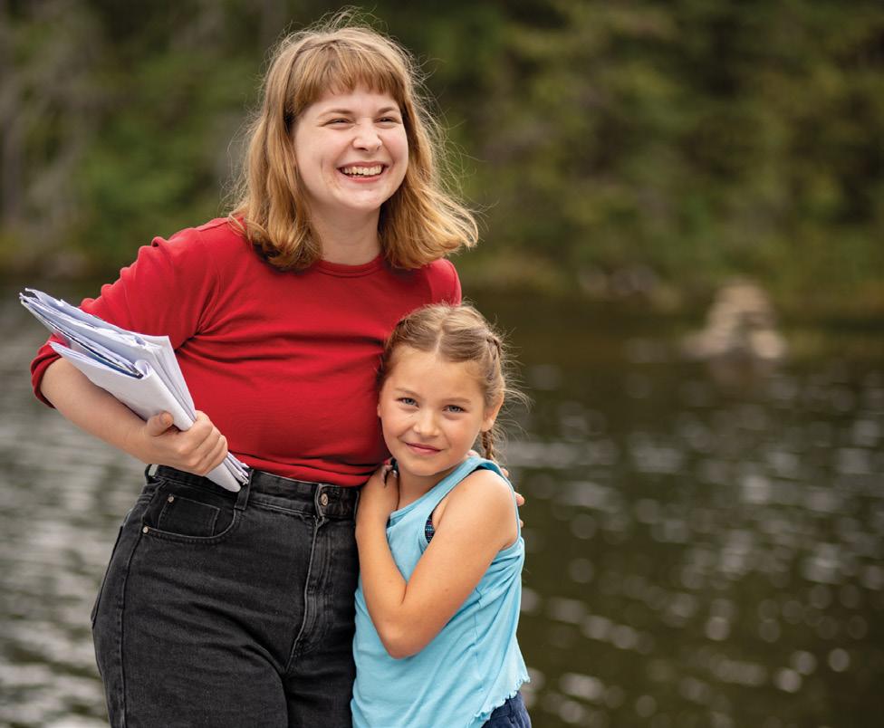 La réalisatrice Gabrielle Gingras et la comédienne principale, Nora-Lee Roy, sur le plateau de tournage.