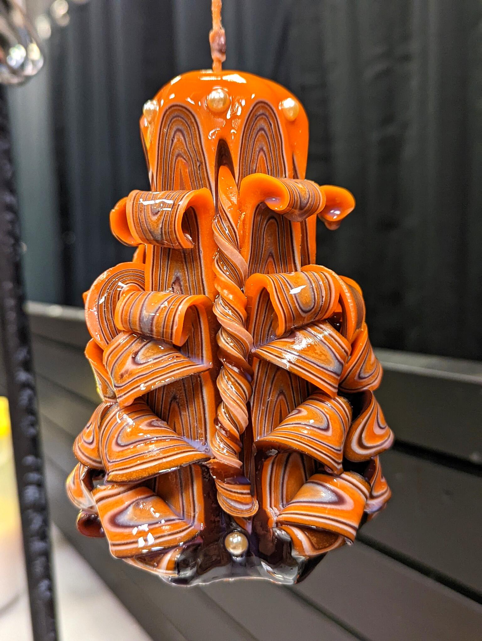 Custom carved candles in large and mini sizes. Additional add ons include pearls, gems, drilled bottom with tea light, or oil lamp conversion accessories. Drilled bottoms with tea lights are for the large custom sized carved candles only.