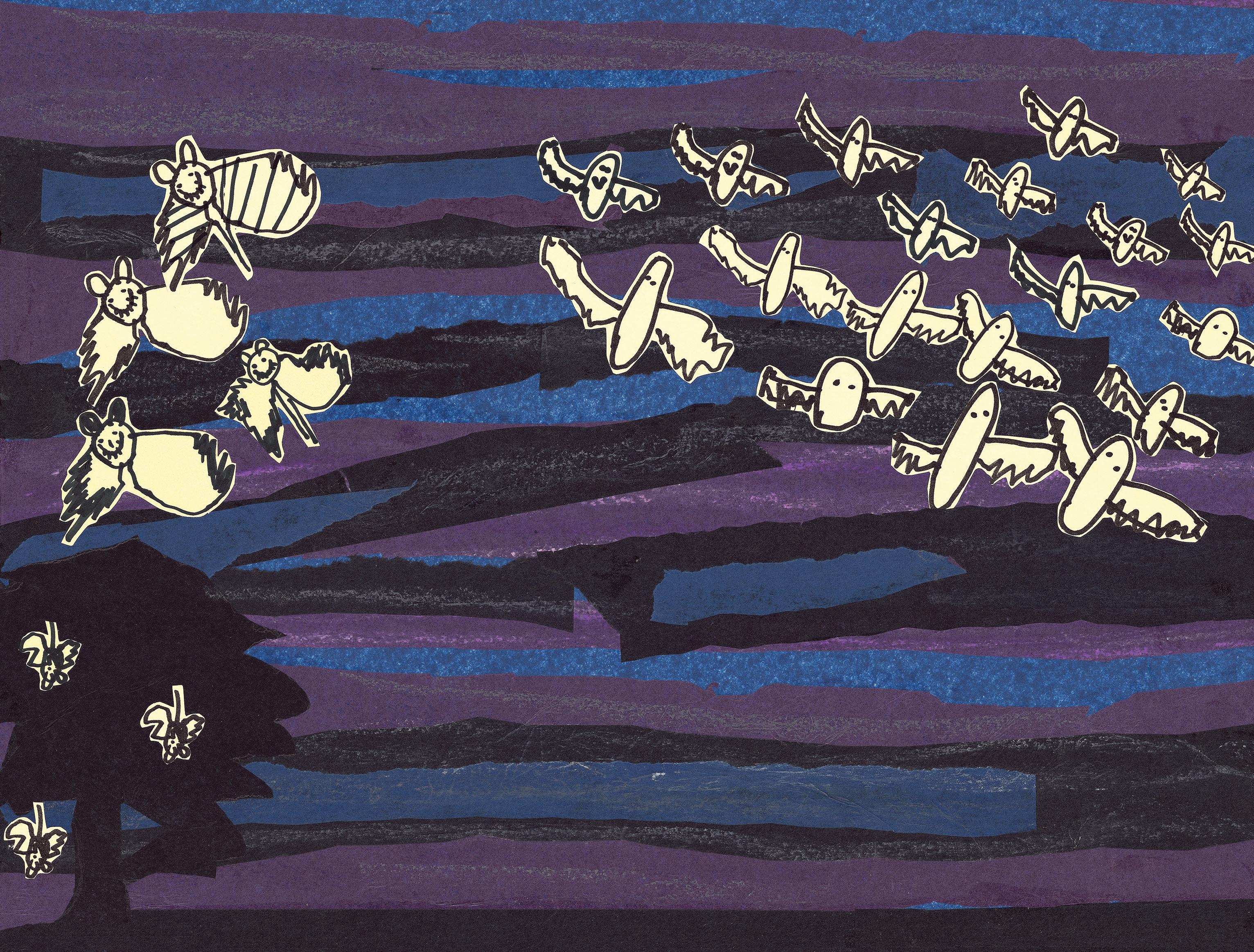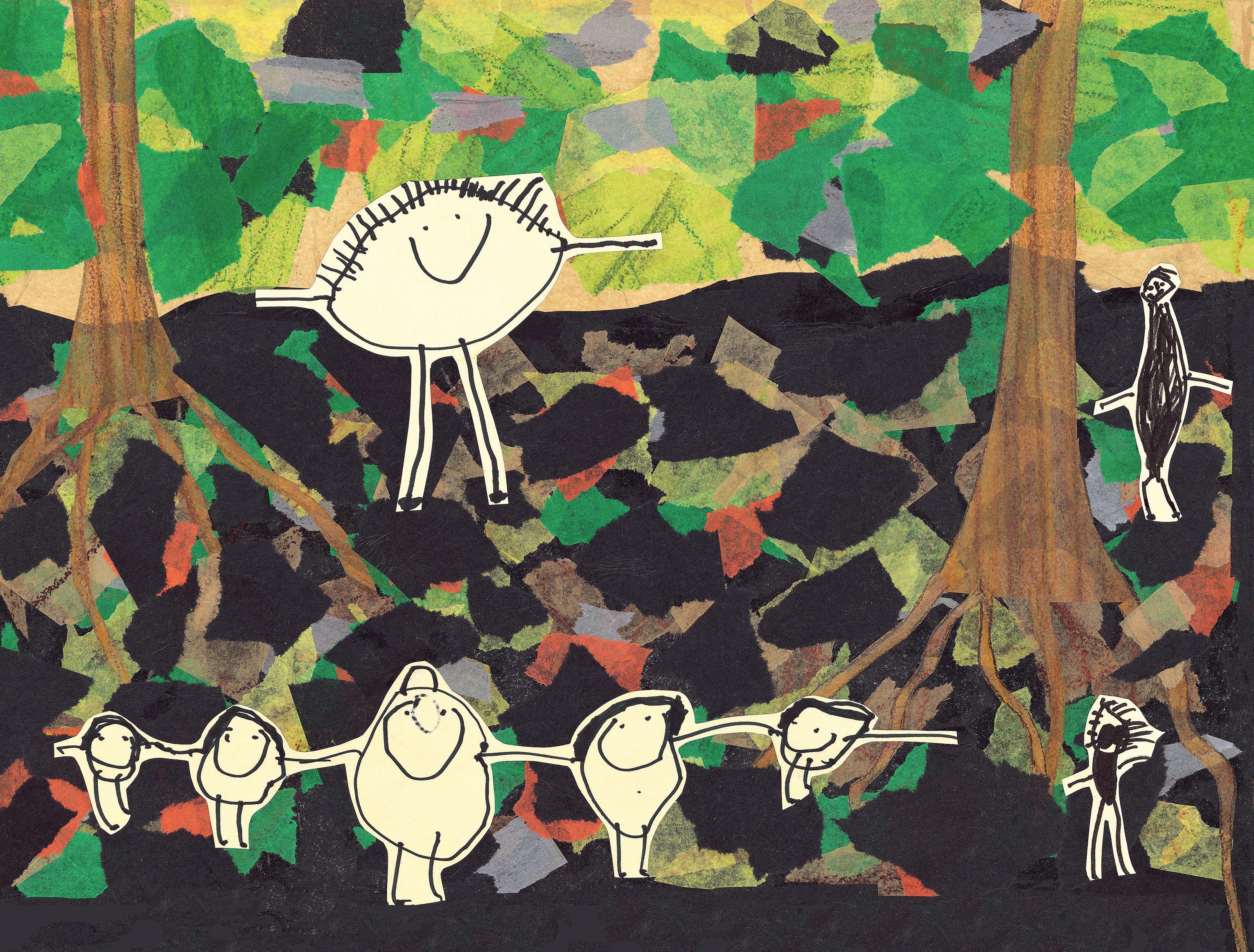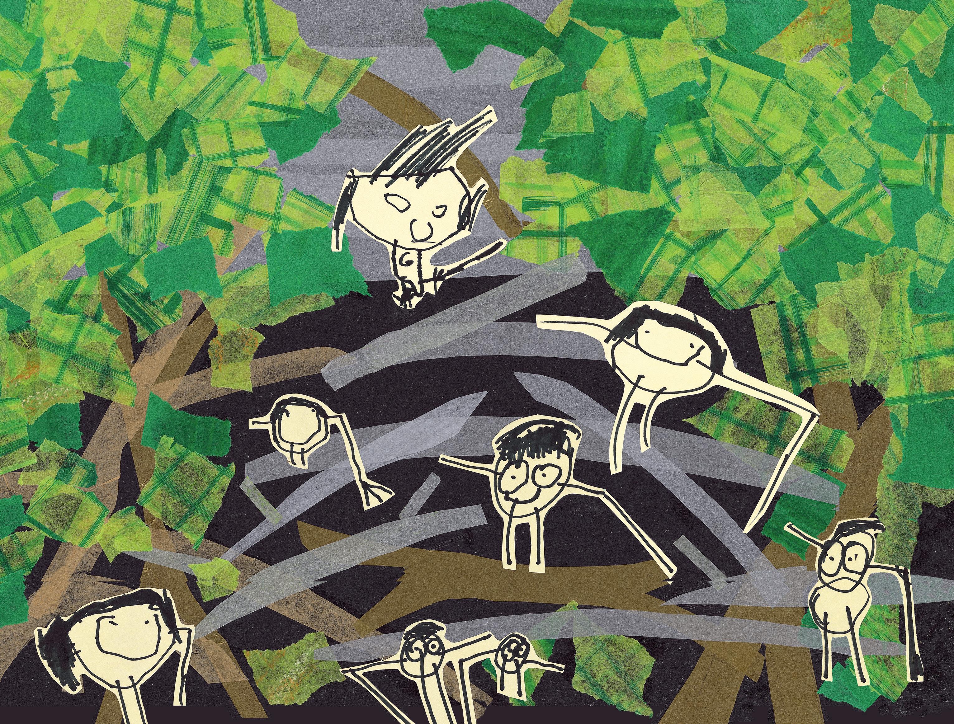 Noisy ngga’nggar laughing, and dancing among the leaves.