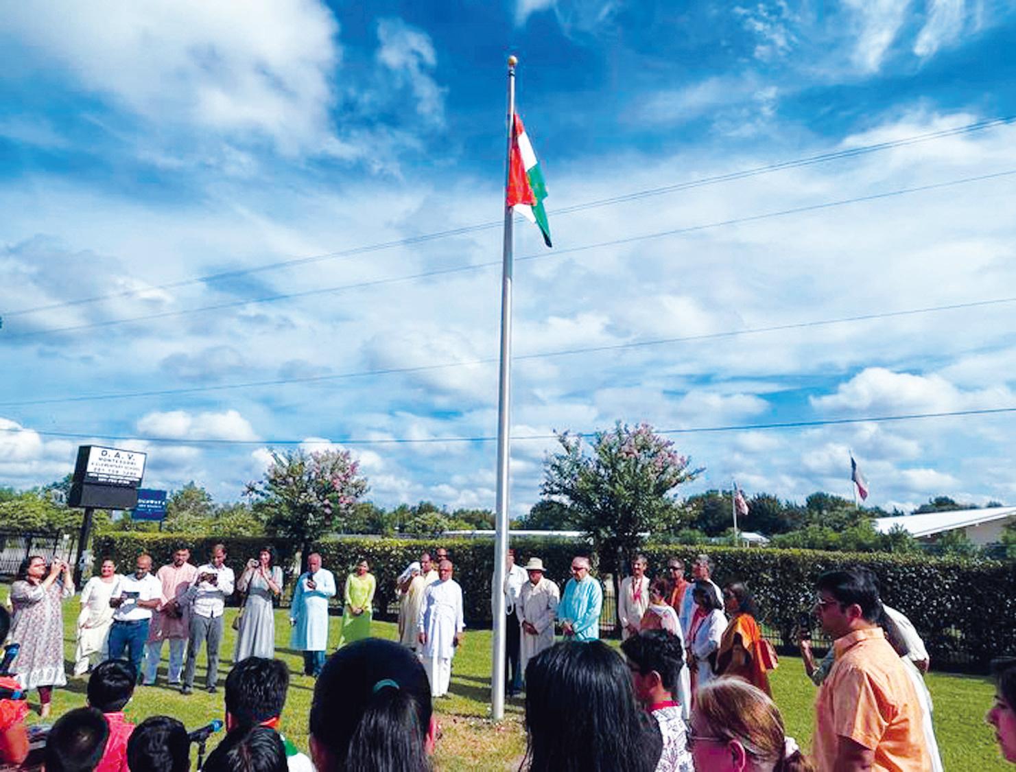Sunday August 18: Students, parents, teachers and volunteers of DAV Sanskriti School (DAVSS) along with members of Arya Samaj Greater Houston assembled for the flag hoisting ceremony.