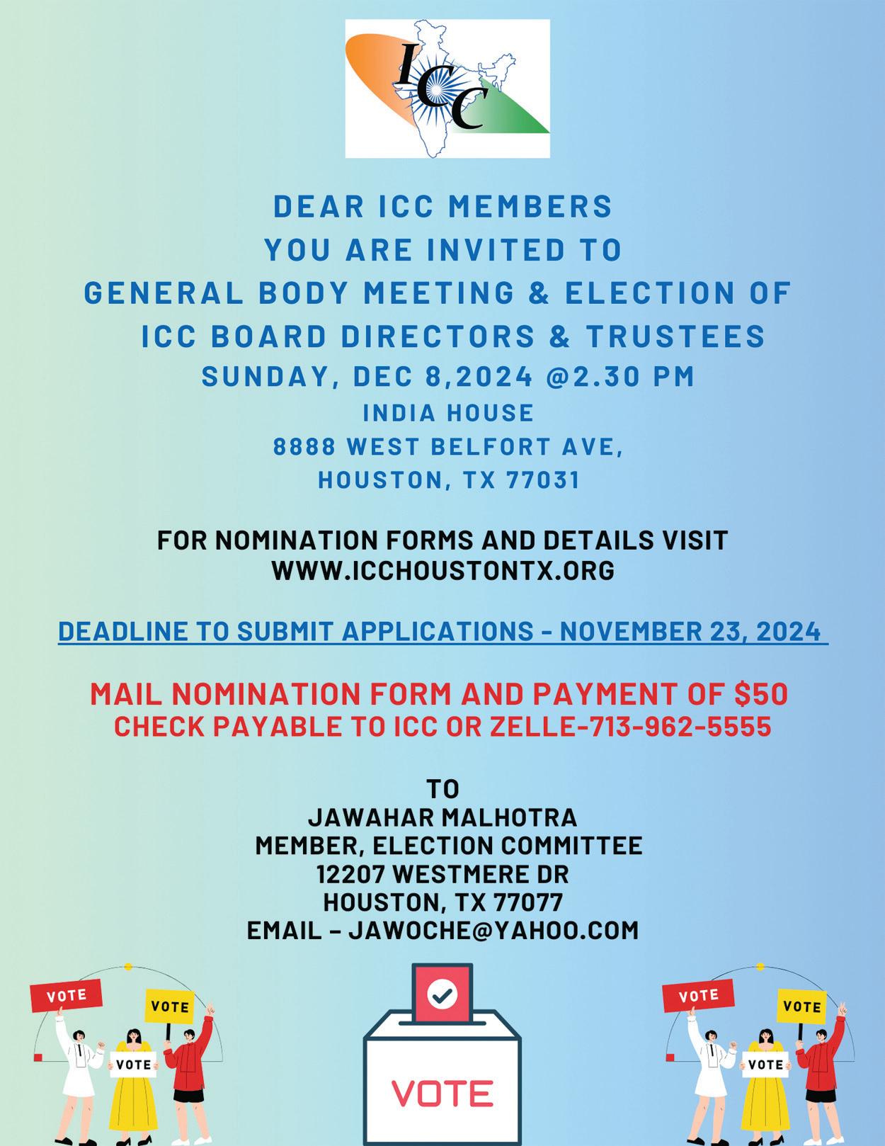Mail Nomination Form and a $50 check payable to ICC or Zelle to 713-962-5555