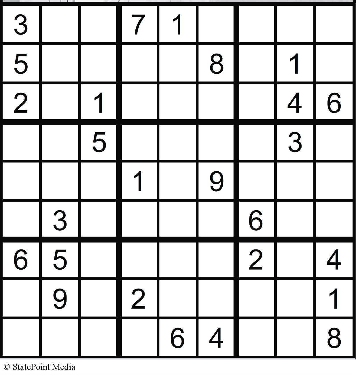 Place a number in the empty boxes in such a way that each row across, each column down and each 9-box square contains all of the numbers from one to nine.