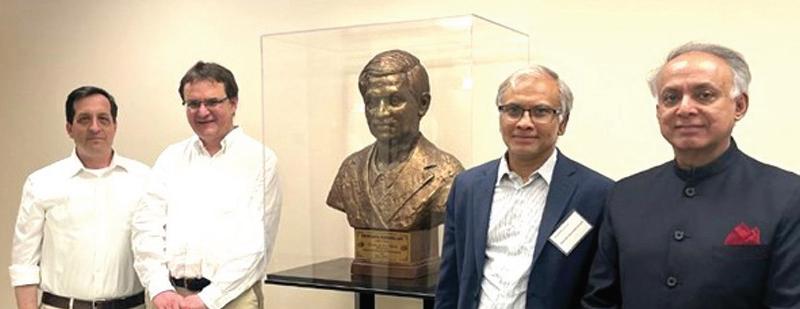 STanFord, Ca: A bronze bust of Srinivasa Ramanujan, one of India’s most revered mathematicians, was unveiled May 28 on the third floor of the Stanford Department of Mathematics. The installation was made possible through a donation by Ramji Raghavan, founder of Agastya International Foundation, and was hosted by Agastya USA and Indiaspora.