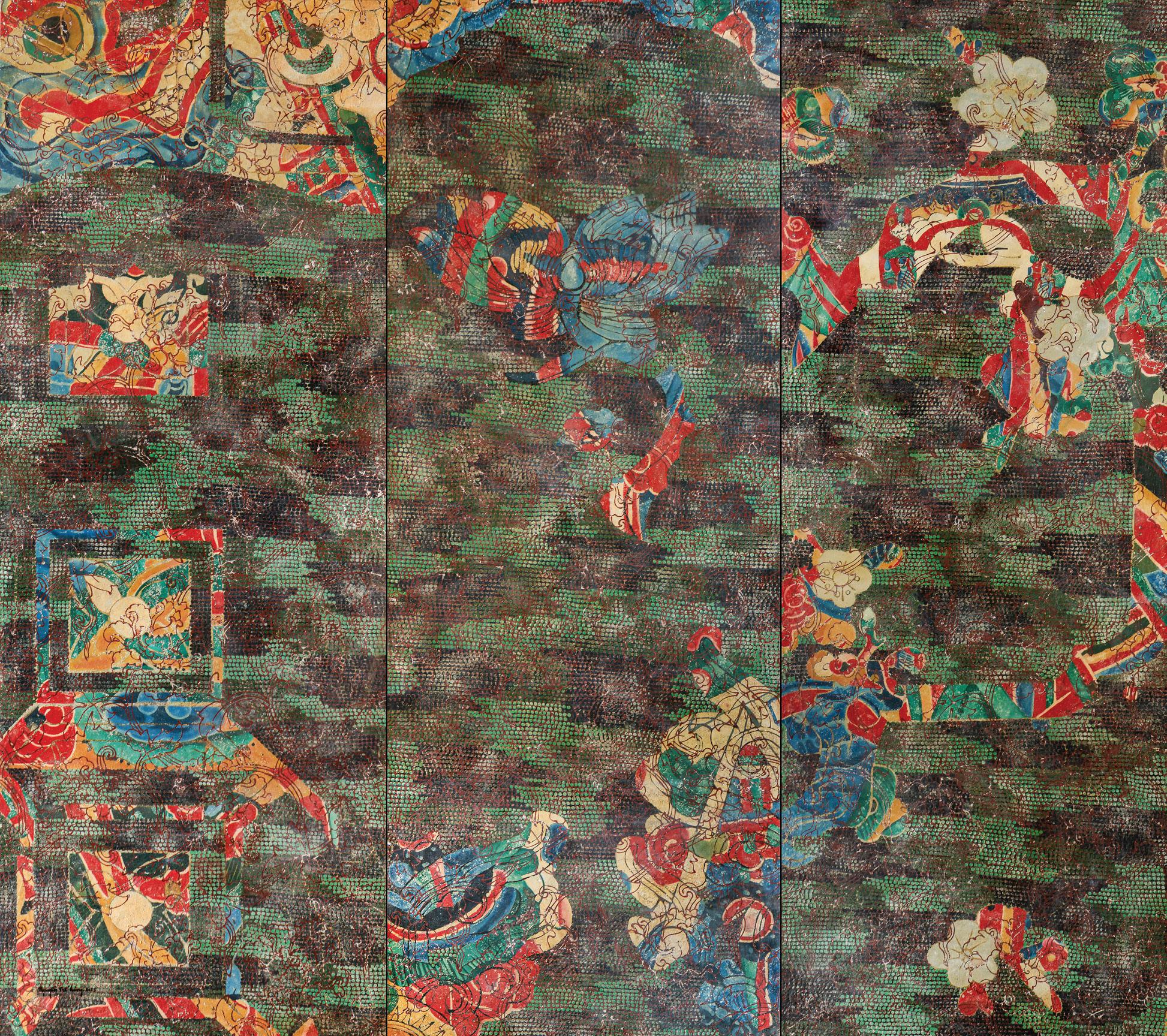 and the architectural details of communal houses and pagodas linger quietly in the background, serving as a subtle foundation for the main figures and sweeping fields of color. Sometimes, the artist arranges these elements within a nonlinear composition, where images are fragmented, obscured, or reconstructed, creating intricate layers of overlapping forms. This interplay of visual elements leads viewers into an ambiguous space or a realm of fragmented memories, fleeting impressions, and the vast, ever-shifting dimensions of time and space.
