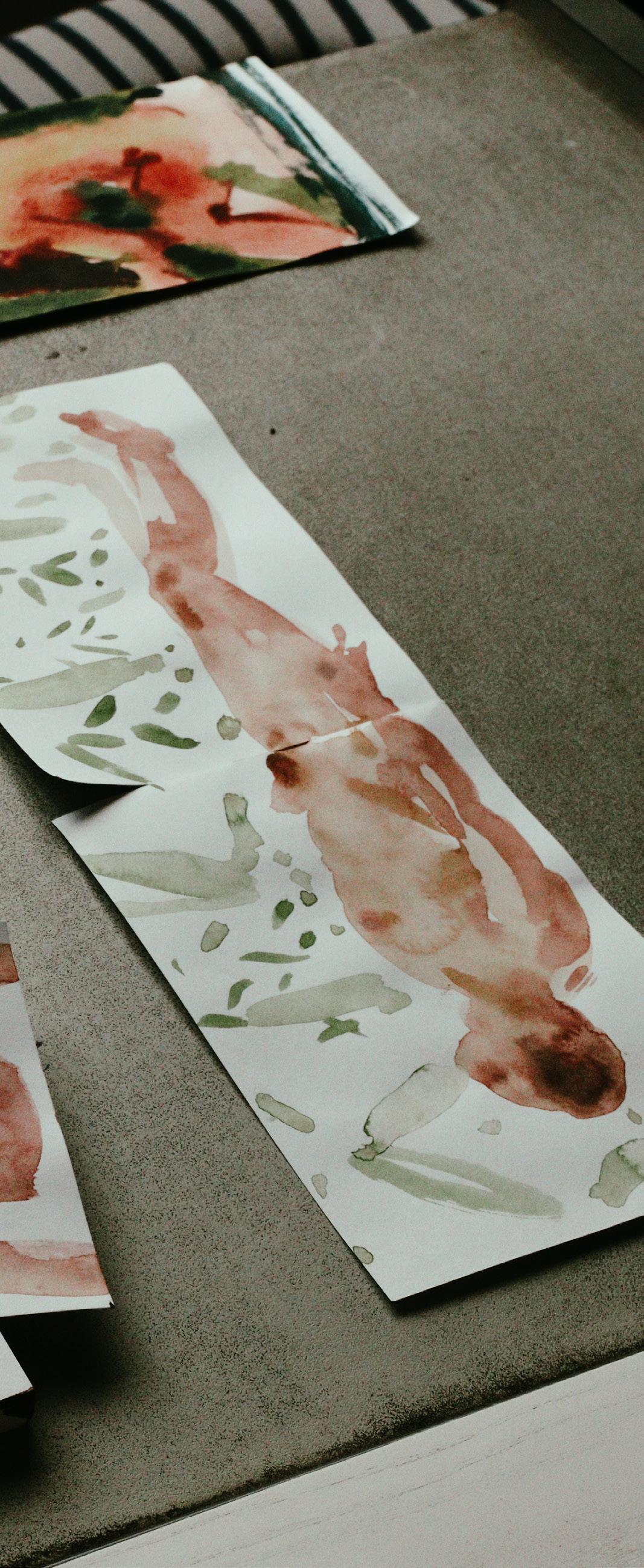 Màu nước trên lụa Watercolor on silk 40 x 20 cm