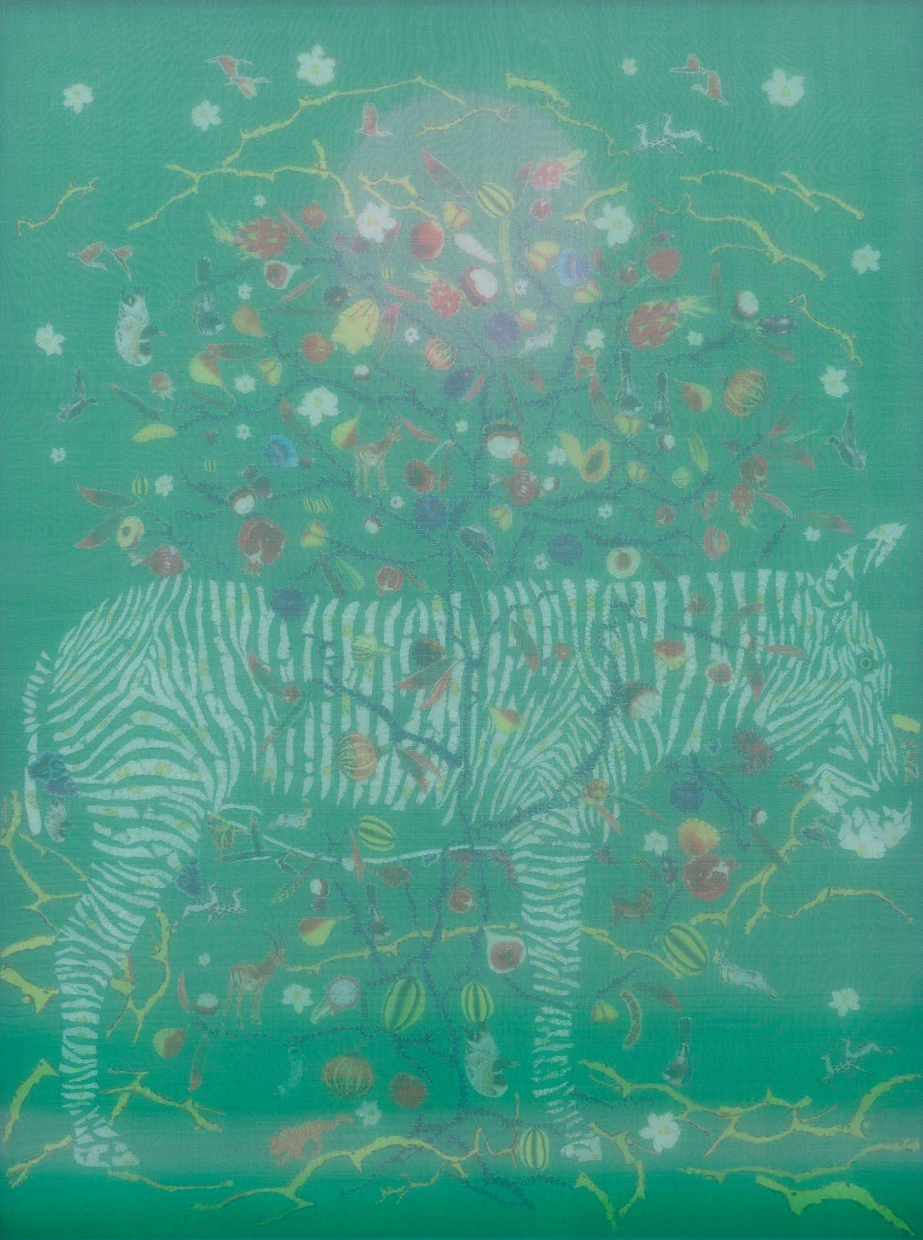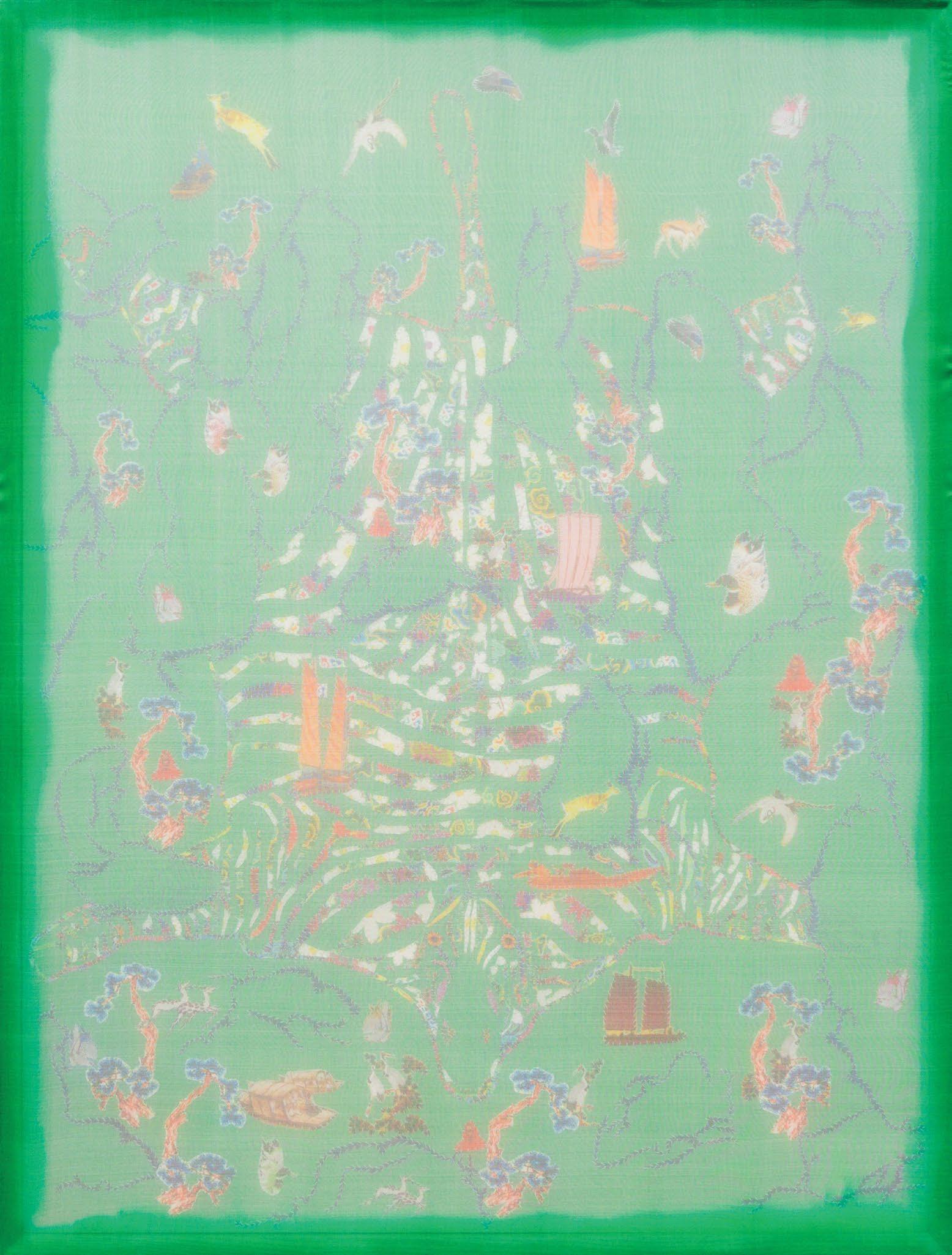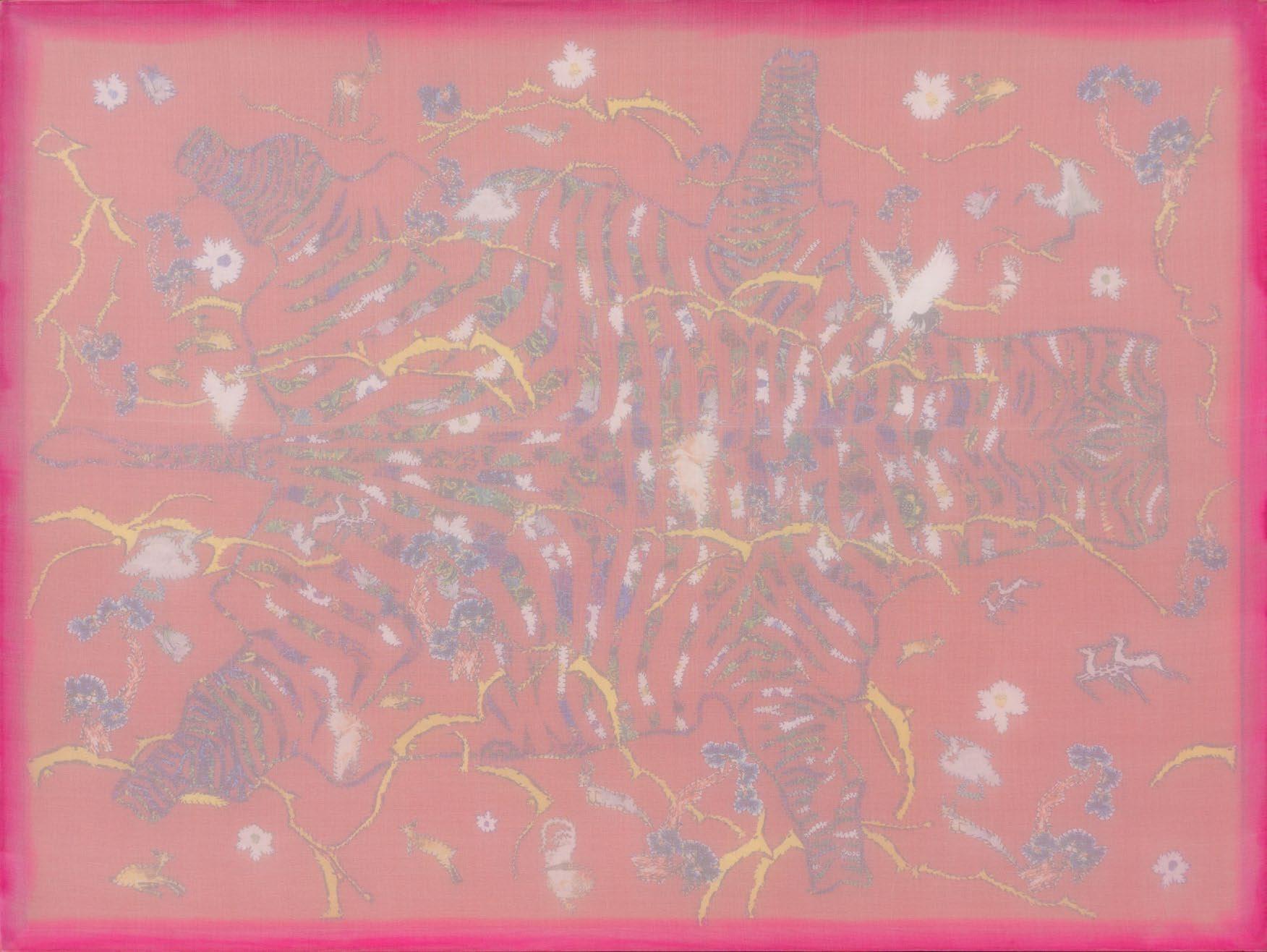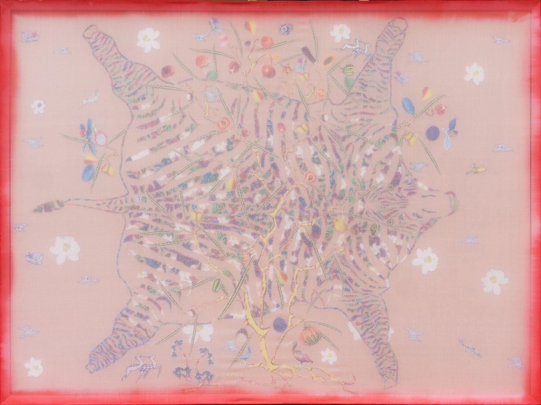 All artworks in the “Karaoke - Karaoke” series are created by combining materials such as silk, embroidery thread, fabric, and watercolor.