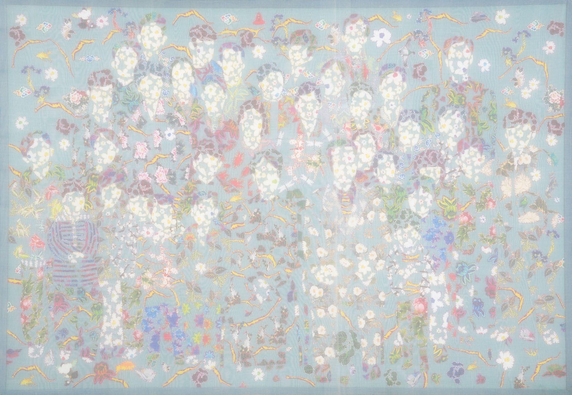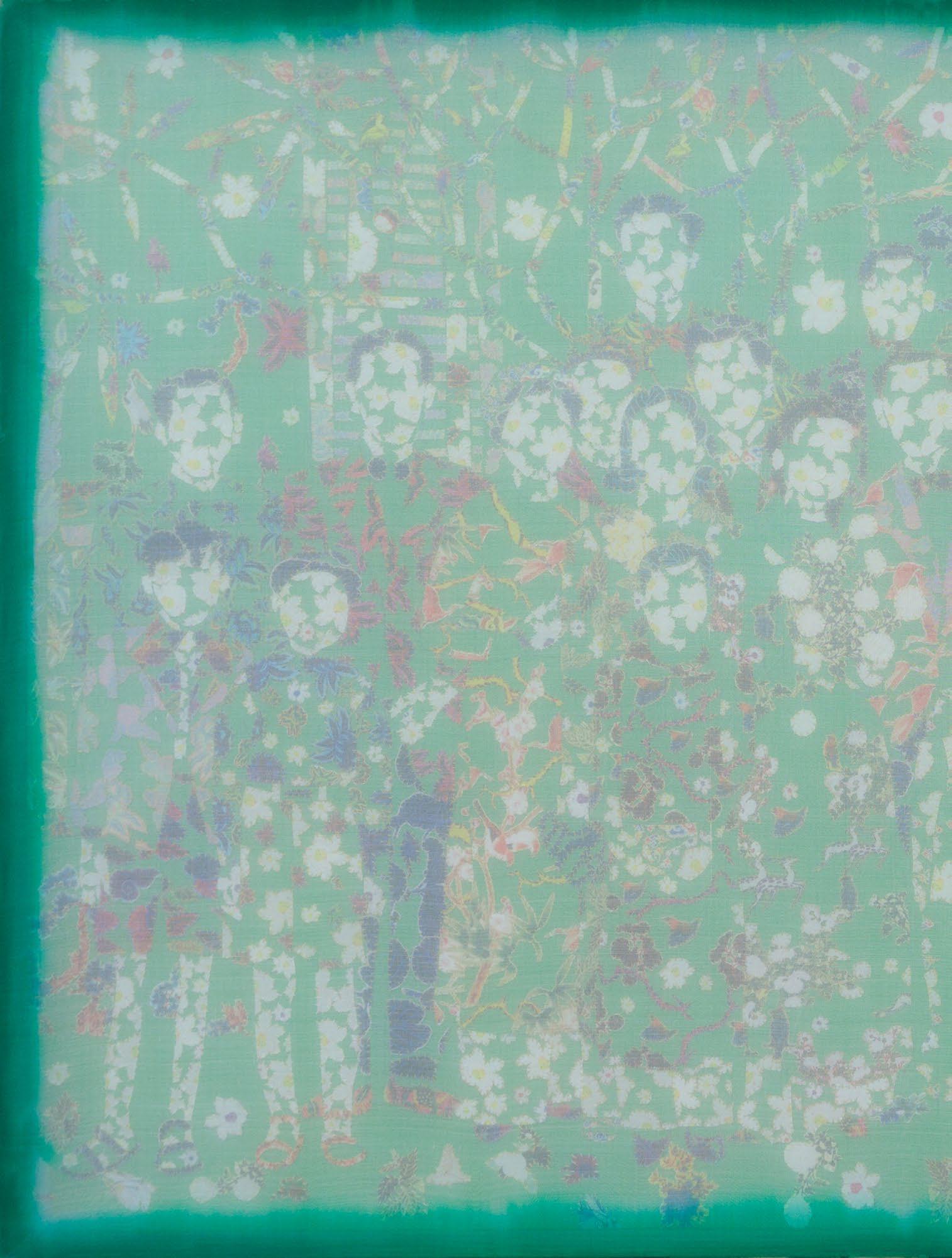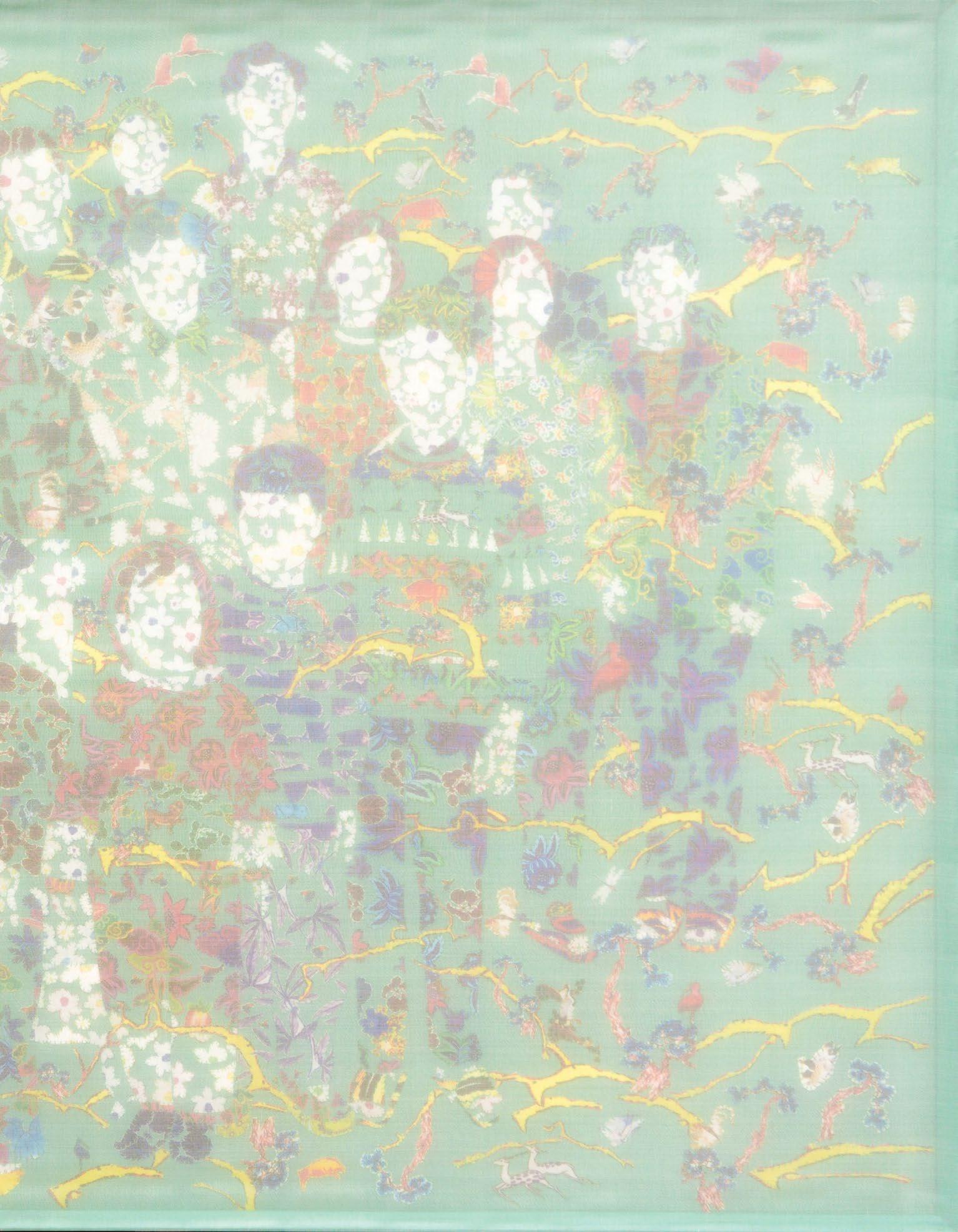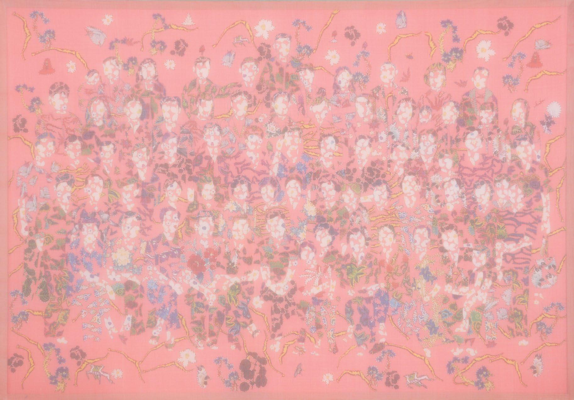 I observe the dissolution and reformation of distinct elements: skin, bones, living creatures, animals, and more. Not to analyze life and death; instead, each of these elements is crafted from floral-patterned fabric, representing their roots in nature.