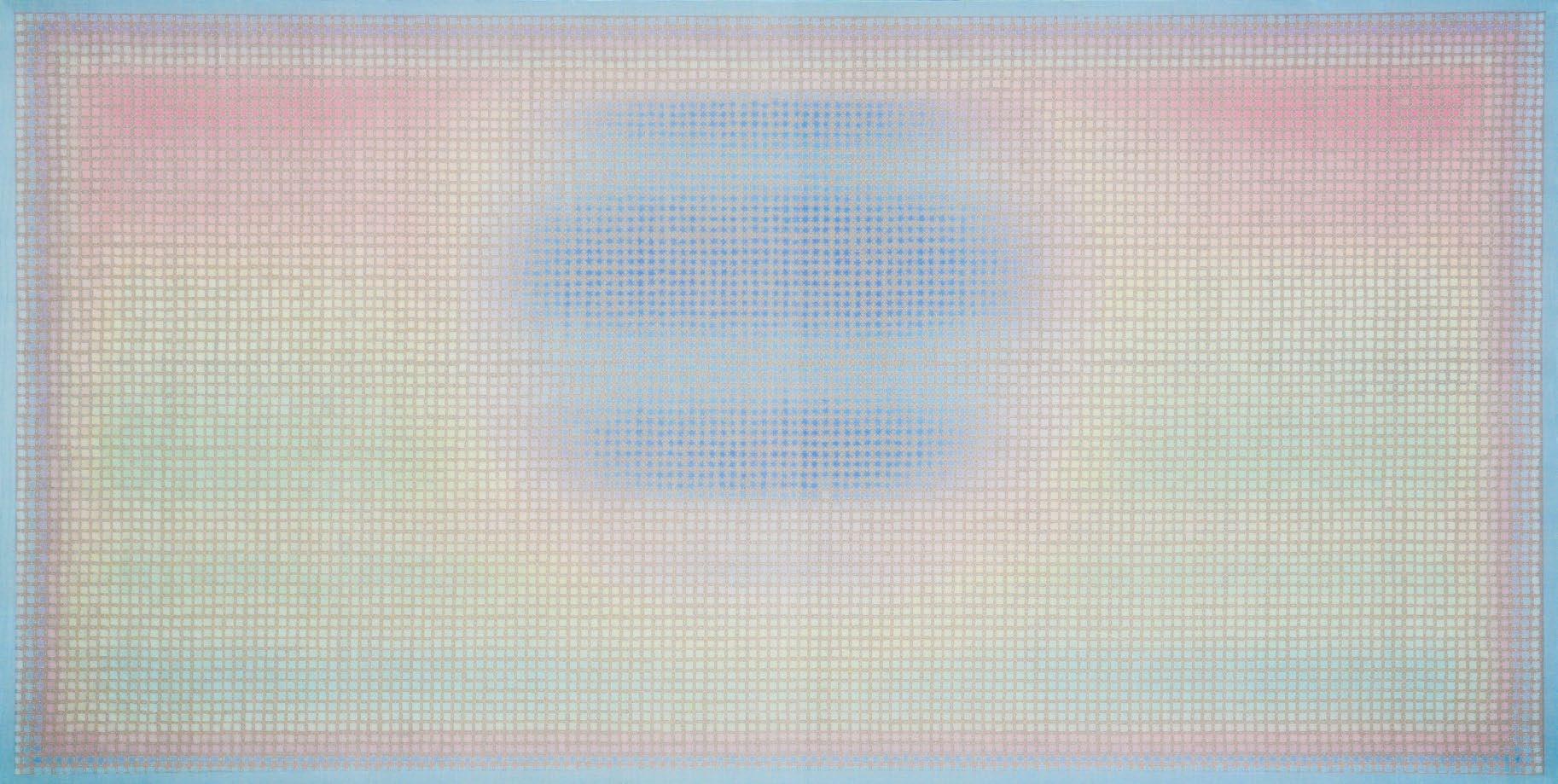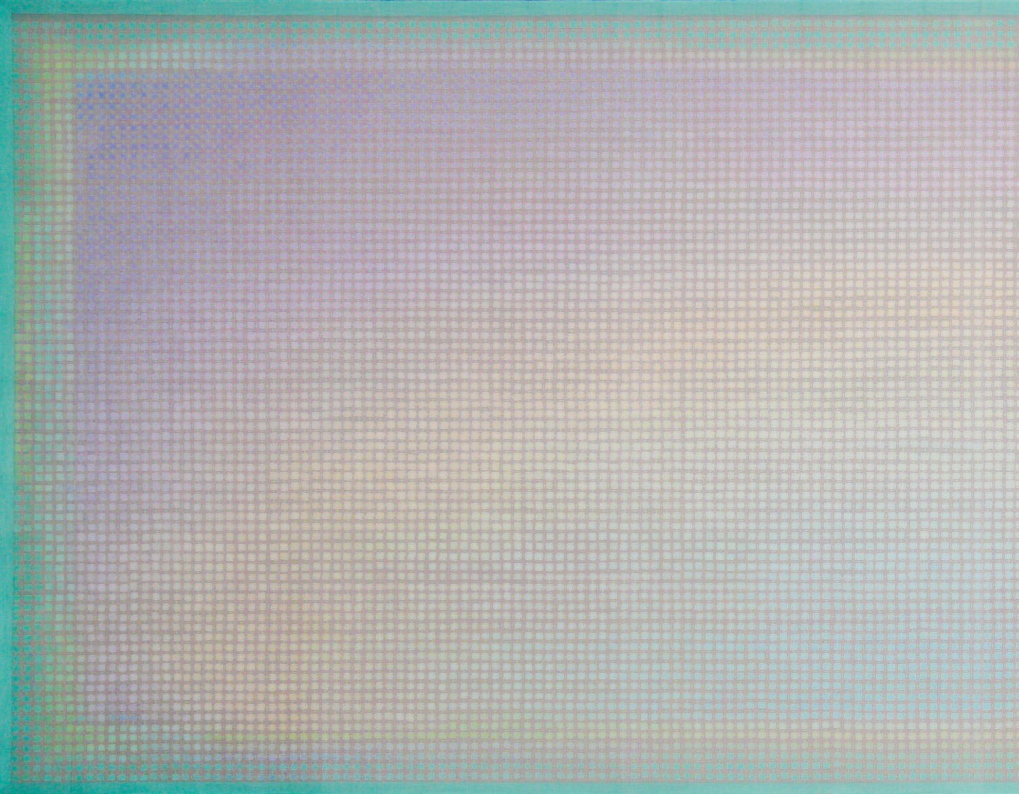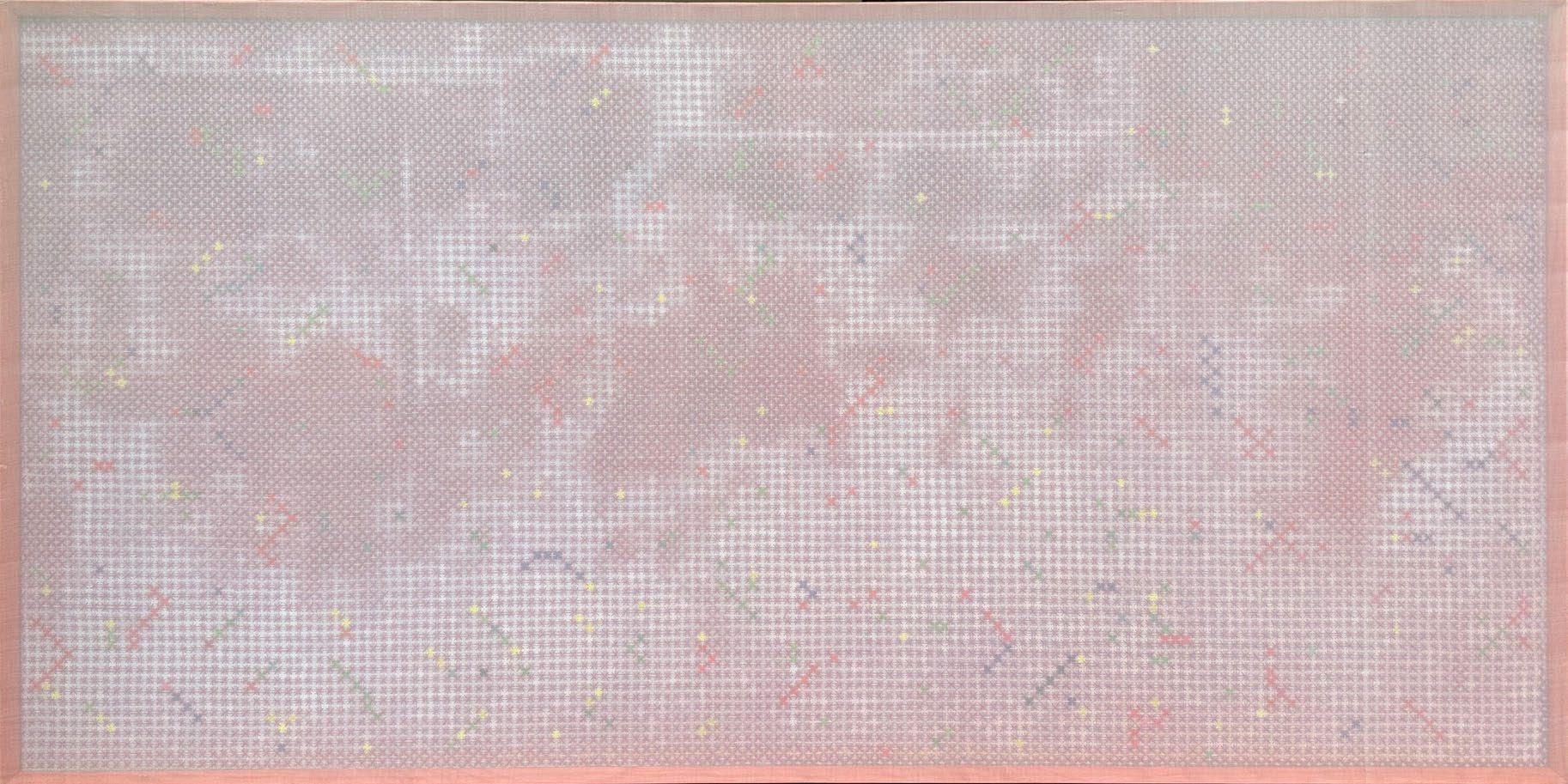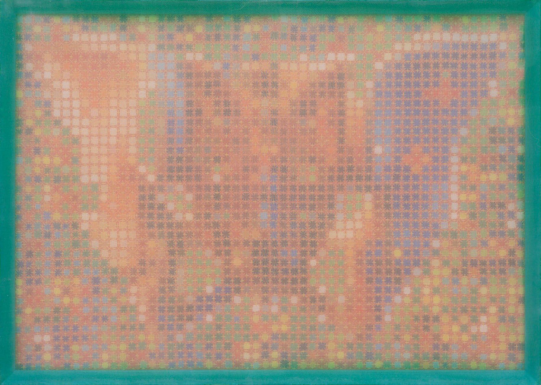 In works from this period, artist Doan Van Toi reflects on the interdependence of all things and the harmonious interaction between humans and nature. He observes all things with an equanimous and equal mind. Bones, pieces of skin, weapons, hunting trips, boat people, in essence, are all the same; they do not symbolize death, destruction, or anything else but simply represent a deep gaze into the inherent nature of nature itself. All material things, detached from their forms, cultural and social contexts, historical circumstances, are composed of the four great elements (earth, water, fire, wind of the universe) or molecular properties. Similarly, images of families are pieced together from various patterns, blending into each other without clear individual identities. They are all family and belong to each other. There are also times when he leads viewers through meditation language, verses, or the teachings of Zen masters and song lyrics to stroll along the riverbank, climb the mountain peak, where there are huts and white clouds flying not just to admire the scenery, listen to the sound of rain, and smell the fragrance of flowers but also to observe one’s body and emotions. Within nature one dwells, and within individuals nature dwells. There, hundreds of thousands of small colored squares dissolve into the vast space like drops of water merging into the ocean. Not a single drop is lost, they remain eternal. The three linears of images are separated but all calmly gaze deeply into the finite image of the object enabling it to fade into the limitless infinity.