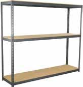 Extremely durable and dependable, these racks assemble and expand easily, allowing access from all sides. The bolt less design snaps together securely without tools or hardware, while add-on units include (2) T-posts that join units together for more stability with less construction. Featuring a scratch-resistant enamel finish & roll-formed, 14-gauge steel uprights, these units are equipped with shelves that adjust at 11/2” increments. 96”W models with a 1000 lb. capacity include (3) center deck supports per level. 96”W models with a 1200 lb. capacity include extra heavy-duty C-channel beams & (3) center deck supports per level.