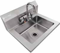 Easy-clean, satin finish benches are perfect for food service, laboratory, and many other applications. All models are sound deadened to resist vibration with 17/8” hemmed safety edges. These 30”D benches are channel reinforced for extra strength. 14 gauge bench tops offer a 1,000 lb. capacity; 96”L benches come with 6 legs for added strength. Benches include height adjustable, 18 gauge steel lower shelf for added storage. All models are 35”H. Tubular legs are 15/8” diameter with 1”H adjustable leveling feet. These sink benches feature a 16 x 21 x 8 sink with 4 back splash and 6 H gooseneck faucet. Connects easily to standard plumbing. Available with left, right, or center sink. Meets NSF and ISDA standards.