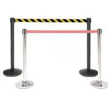 Enforce one-way traffic flow with crowd control stanchions and floor markers.