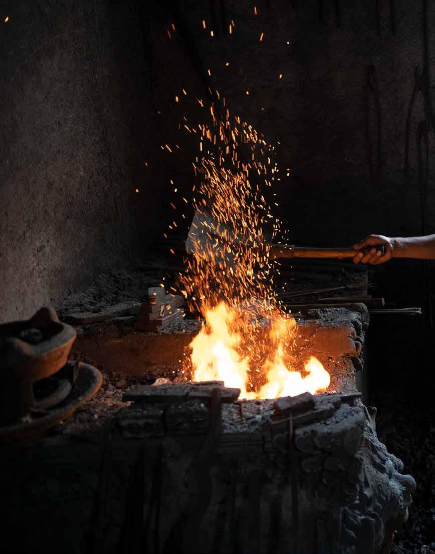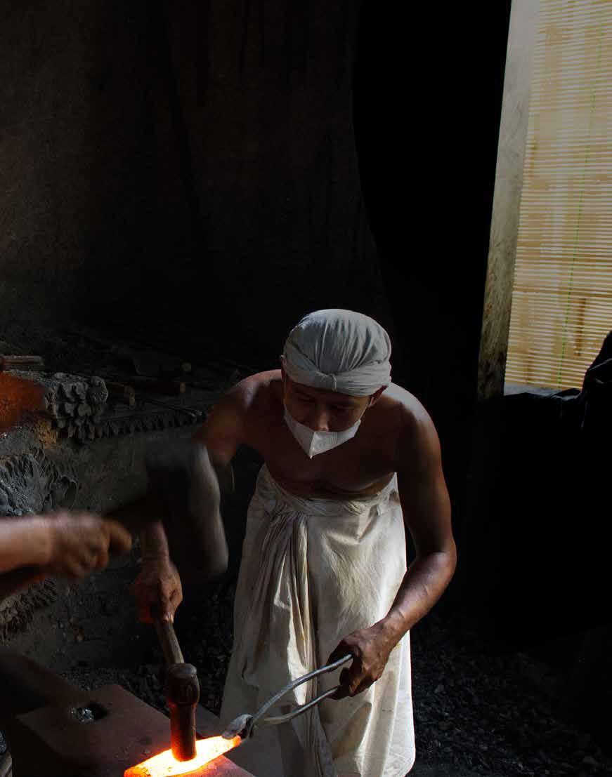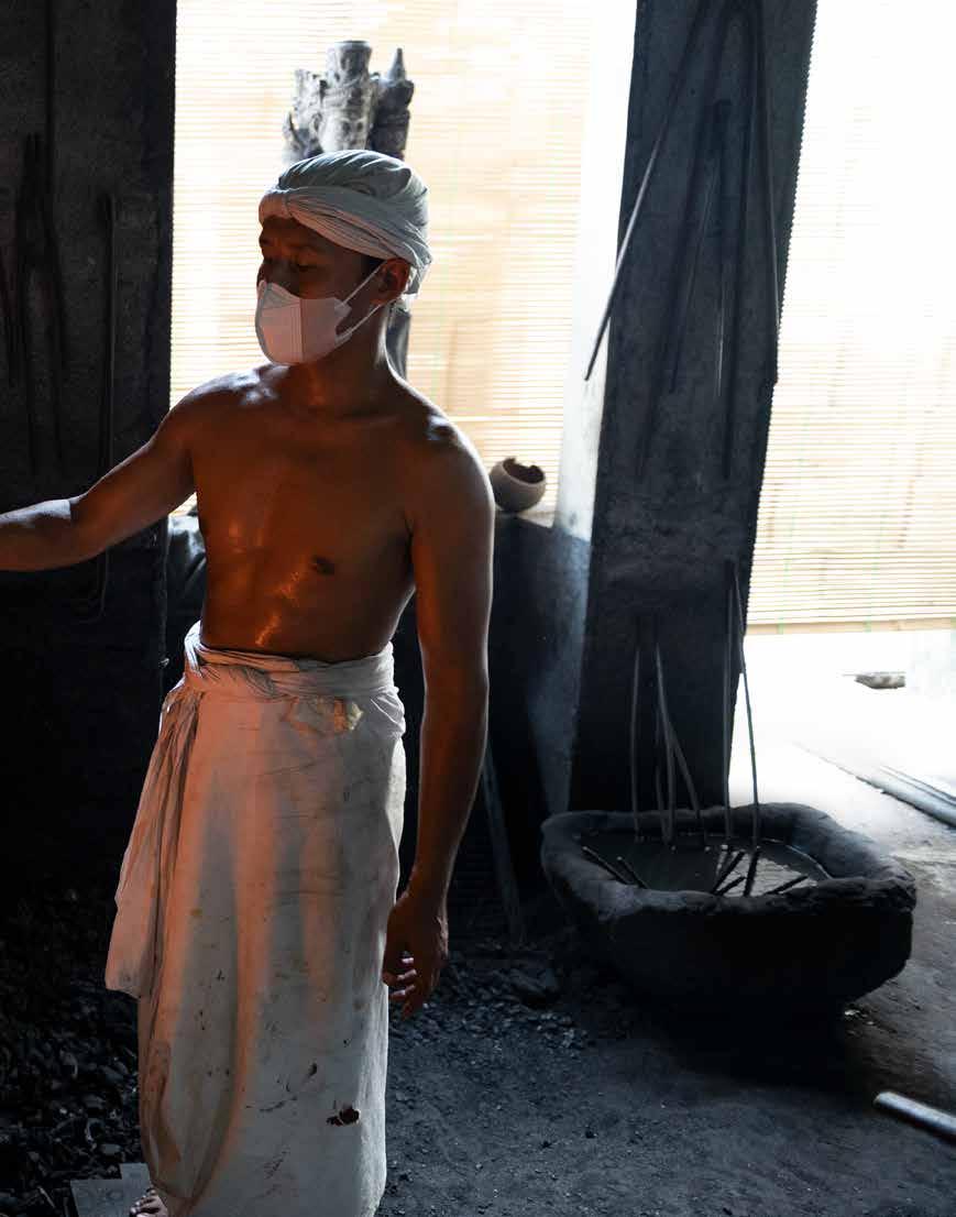Pak Sardi, the panjak, guided us to the baselan or the workshop room or the keris making workshop which is located at the back of the museum. In the Baselan, it turned out that there were already three people dressed in the same clothes as Mr. Sardi. One of them was near the furnace. That person is in charge of burning the raw material before it becomes a keris blade and then placing it on a pad to be hit with a hammer by another panjak.