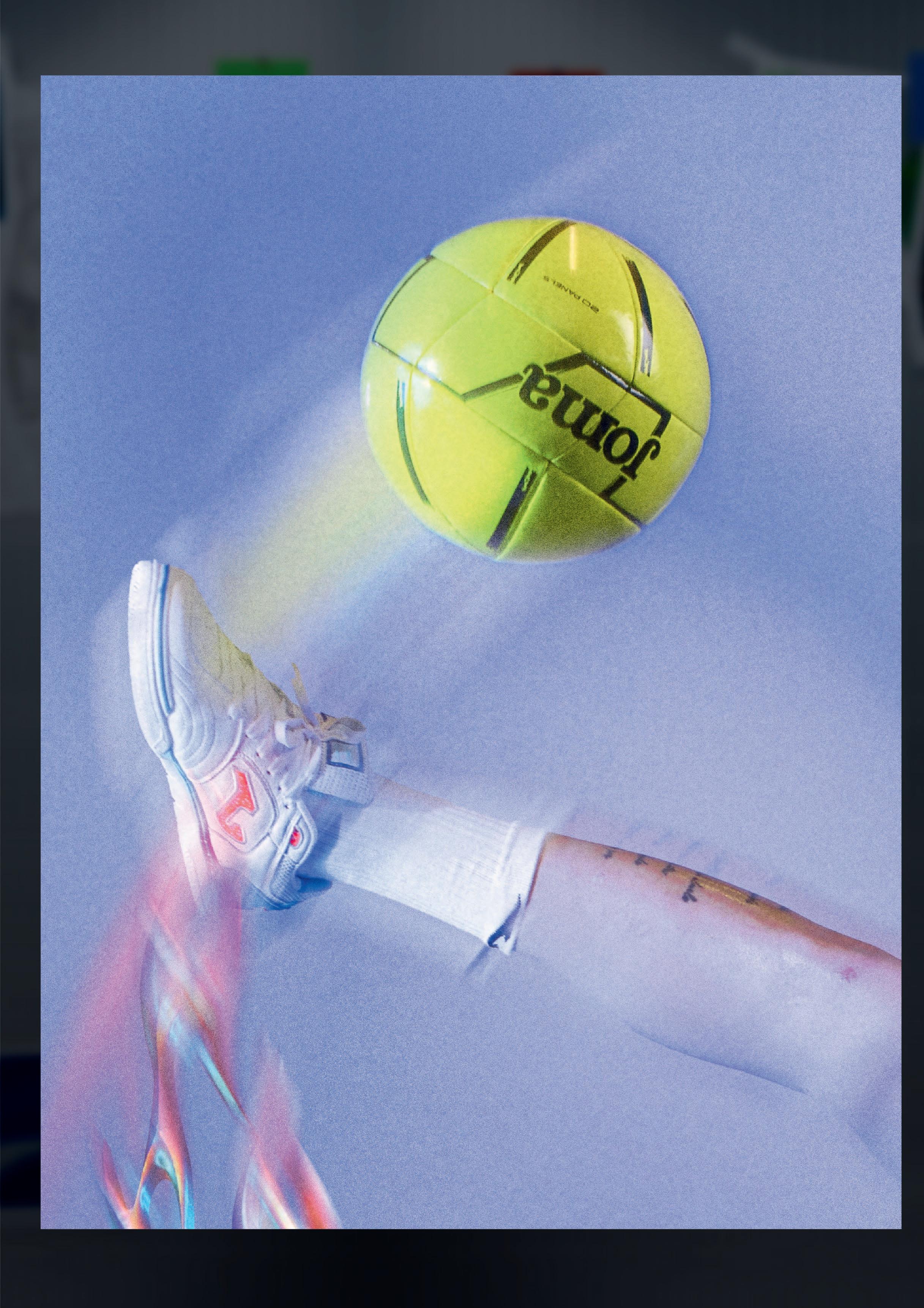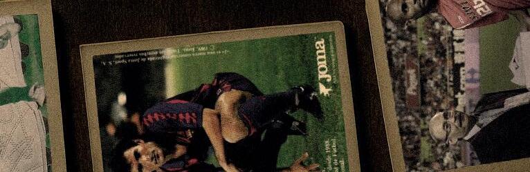 Joma startet 1996 die berühmte Kampagne „COLOR IN FOOTBALL” und revolutioniert den globalen Markt für Fußballschuhe. Alfonso trägt weiße, Morientes überrascht mit roten Schuhen.