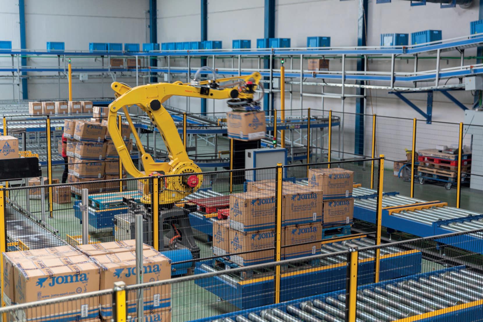 Joma führt neue Robotermaschinen im internationalen Logistiklager ein, um die Abläufe von der Produktlagerung bis zur Versandvorbereitung für den weltweiten Versand zu optimieren. Das Unternehmen liefert somit 87 % der Bestellungen vorzeitig aus und reduziert die Fehlerquote auf 1%.