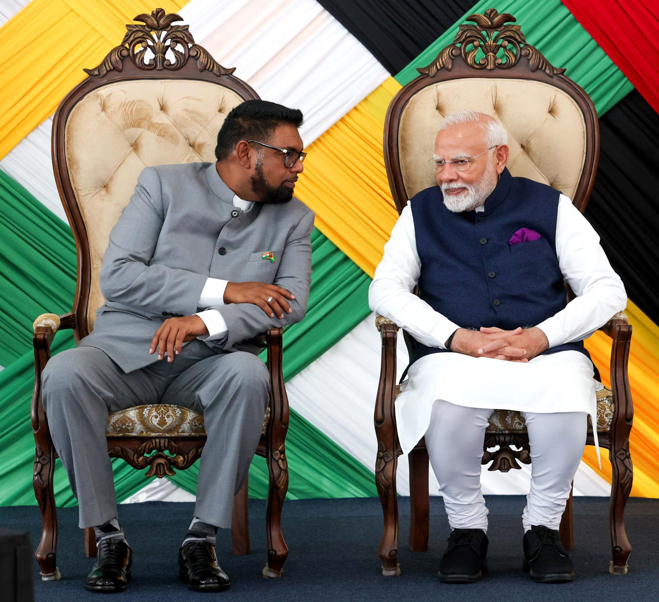 rime Minister Narendra Modi was conferred with Guyana’s highest civilian award, “The Order of Excellence,” by President Mohamed Irfaan Ali for his exceptional leadership and dedication to strengthening India-Guyana relations. The award recognizes Modi’s contribution to global development, championing the rights of developing nations, and his statesmanship on the world stage.