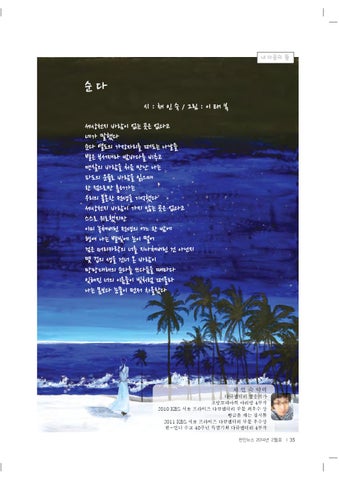 순다 시 : 채 인 숙 / 그림 : 이 태 복 세상천지 바람이 없는 곳은 없다고 네가 말했다 순다 열도의 가장자리를 떠도는 나날들 별은 부서져라 밤바다를 비추고 맨살의 바람을 처음 만난 나는 파도의 운율로 바람을 읽으며 한 점으로만 흘러가는 우리의 불온한 전생을 기억했다 세상천지 바람이 가지 않는 곳은 없다고 스스로 위로했지만 이미 놓쳐버린 전생의 어느 한 밤에 행여 나는 별빛에 눈이 멀어 검은 머리카락의 너를 지나쳐버린 건 아닌지 몇 겁의 생을 건너 온 바람이 망망대해의 순다를 쓰다듬을 때마다 잊혀진 너의 이름들이 빛처럼 떠올라 나는 몸보다 눈물이 먼저 차올랐다