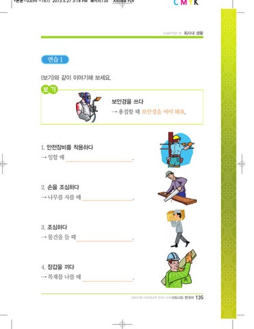 보기 보안경을 쓰다 → 용접할 때 보안경을 써야 돼요.