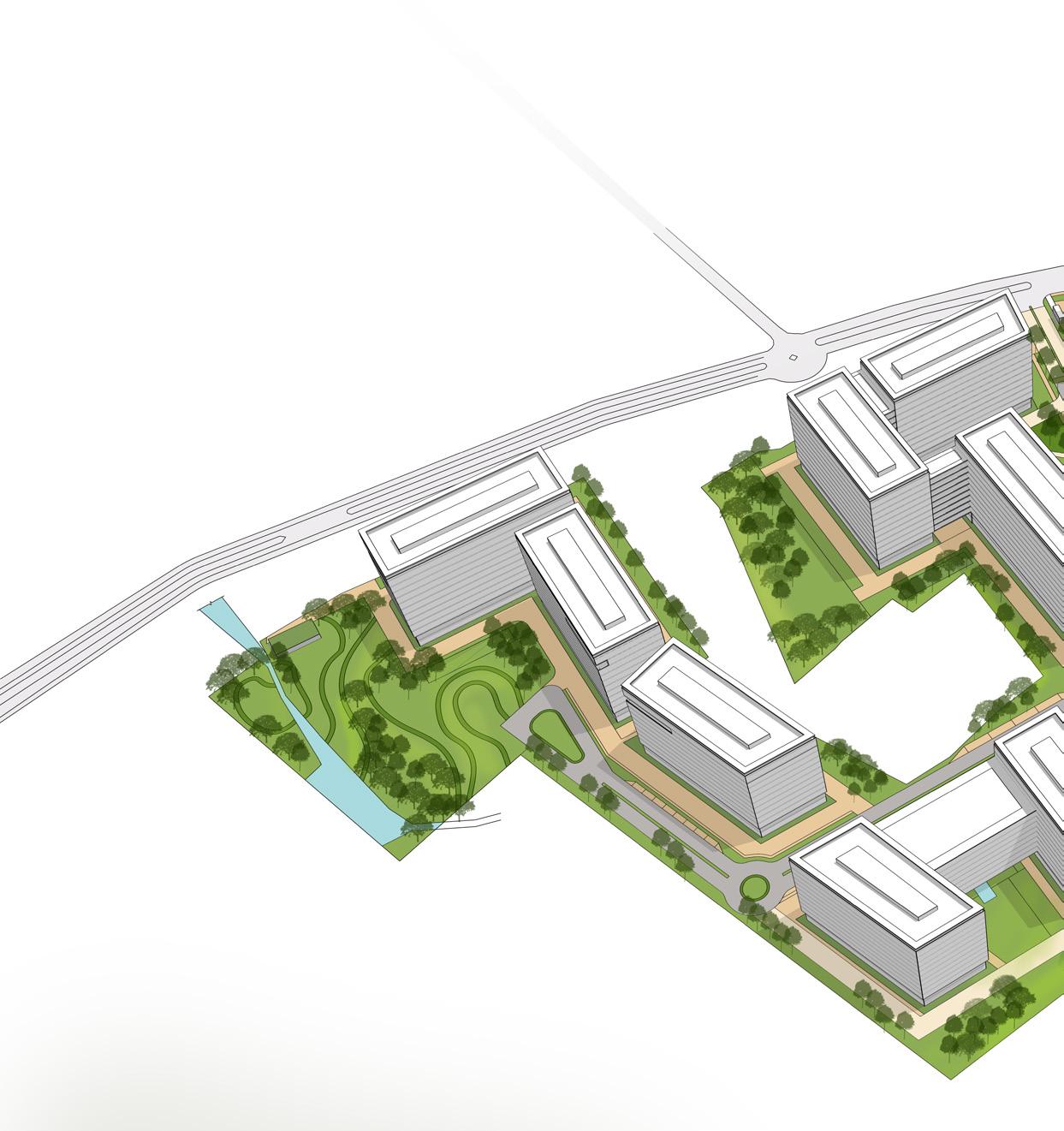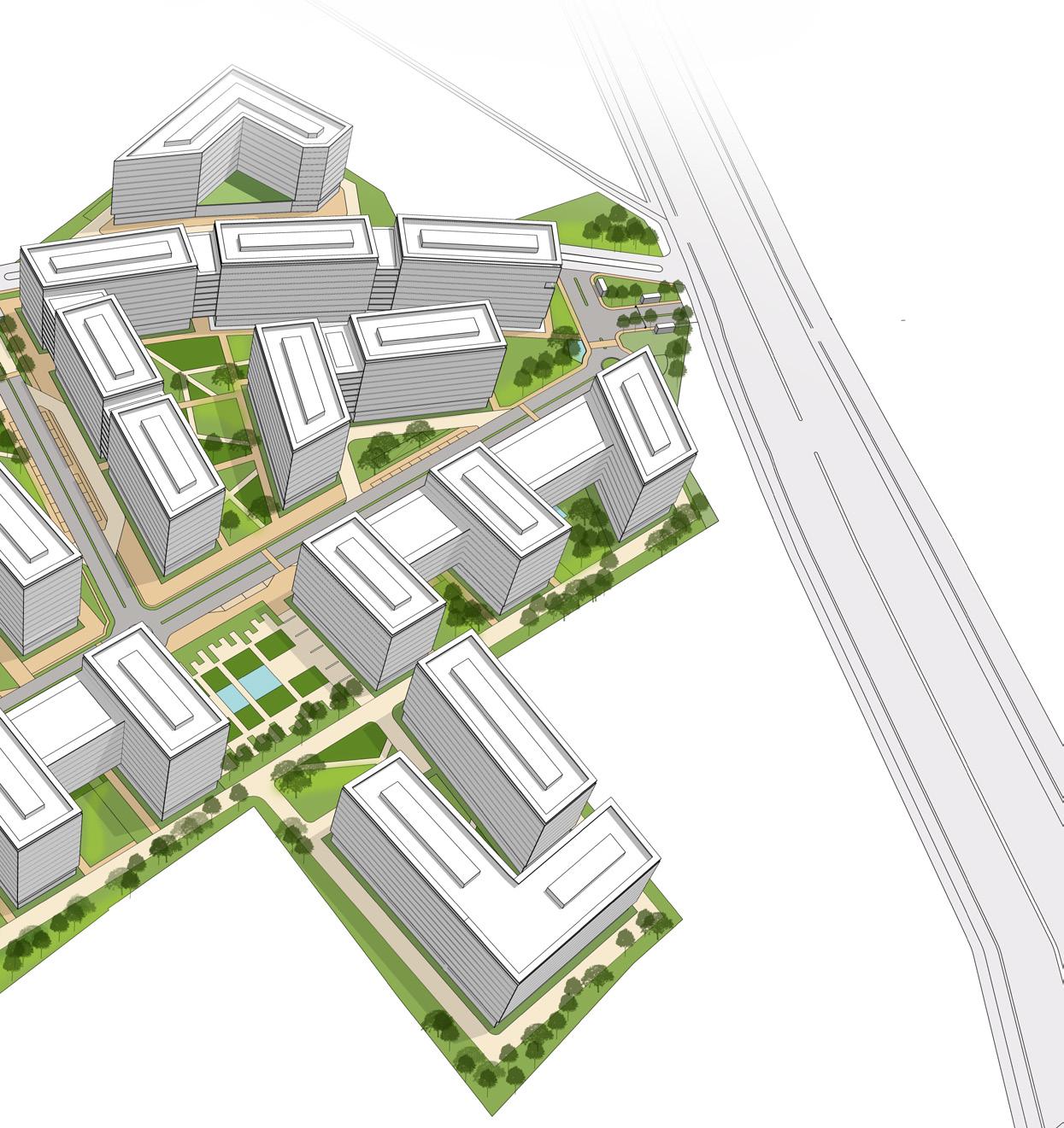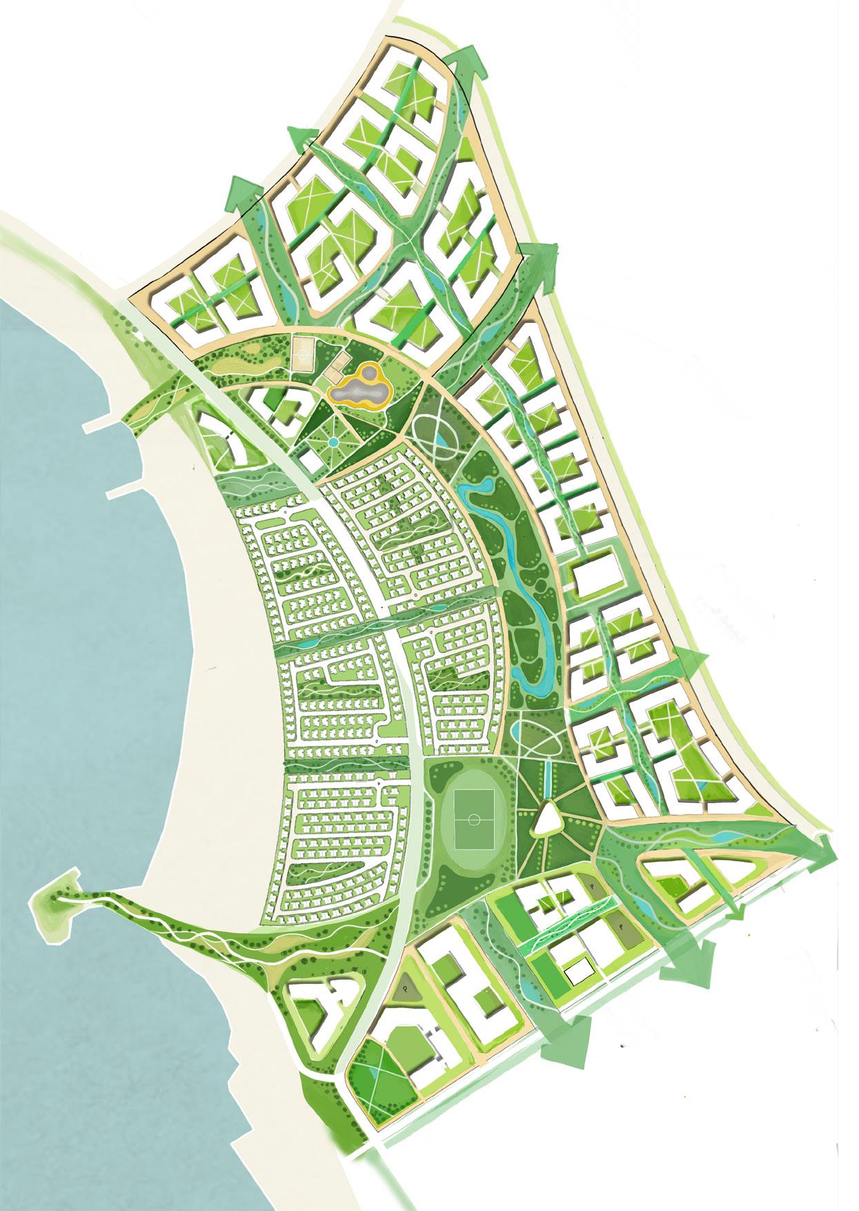 My contribution: Residential blocks B,C and E layouts, Graphics, Materplan rendering, Design report