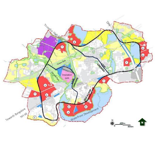 Worked on creating masterplan for the New Town as a brown-field development. The site is conceived as clusters, with cluster sizes ranging from 100 to 450 acres with each cluster having a mix of uses. Residential spaces – blend of high rise and low rise along with landscape