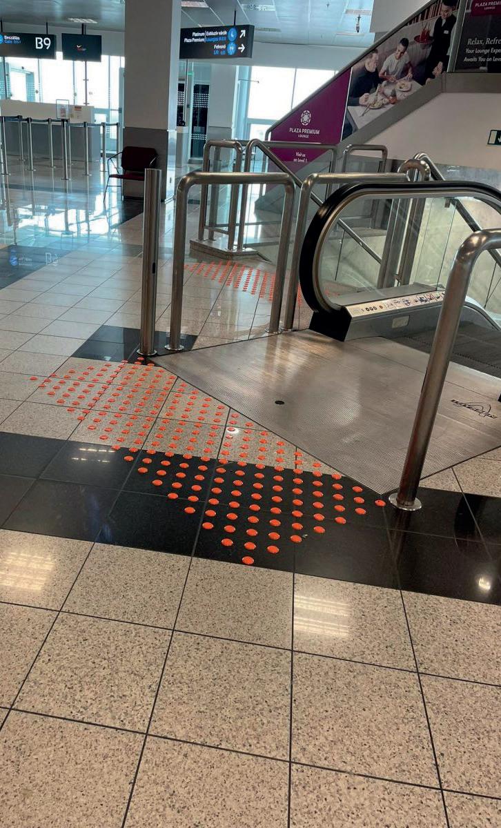 • Taktilis vezetőburkolatok és tapintható információs táblák Braille feliratokkal a vakok és gyengénlátók számára