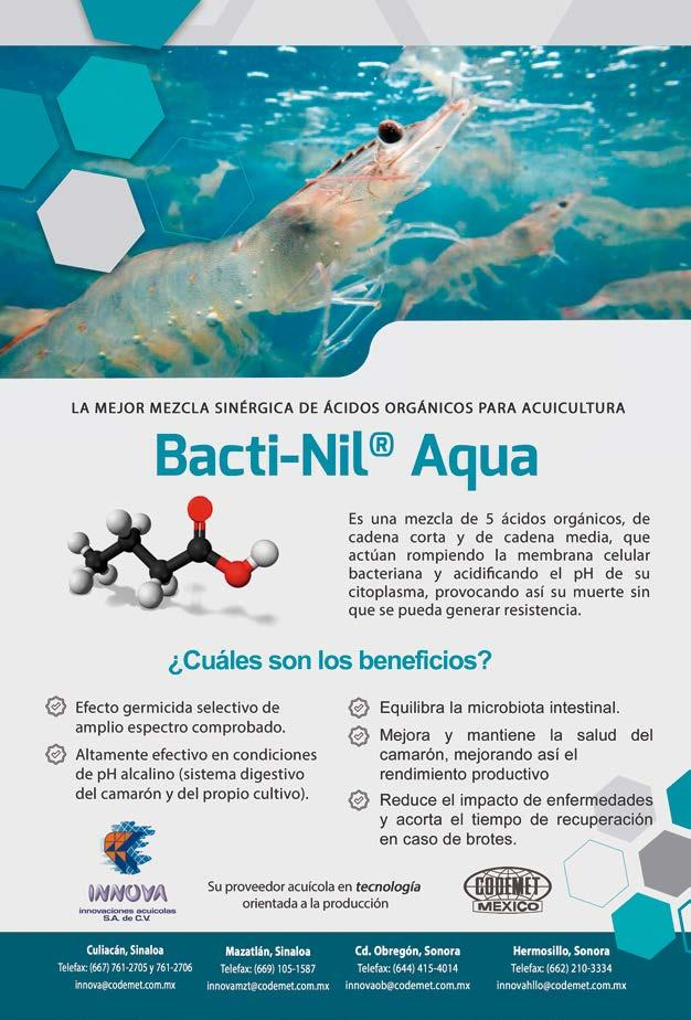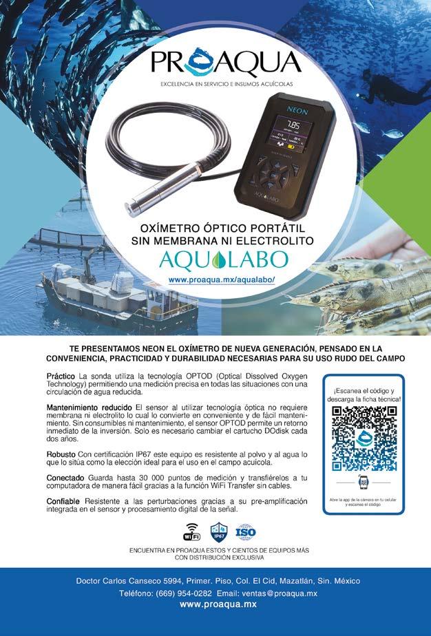 INDUSTRIA ACUICOLA, No. 20.3 - Marzo 2024, es una publicación bimestral editada por Aqua Negocios, S.A. de C.V. Av. Carlos Canseco No. 6081-1 Mediterraneo Club Residencial Mazatlán, Sinaloa. C.P. 82113. Teléfono (669) 257 6671 www.industriaacuicola.com editor responsable: Daniel Reyes Lucero daniel. reyes@industriaacuicola.com Número de Certificado de Reserva otorgado por el Instituto Nacional del Derecho de Autor: 04-2012-051010450800-102. Número de Certificado de Licitud de Contenido: 11574 y número de Certificado de Licitud de Título: 14001, emitidos por la Comisión Calificada de publicaciones y Revistas Ilustradas de la Secretaría de Gobernación. Registro Postal PP25-0003. Permiso SEPOMEX No. PP25-0003, Impresión Celsa Impresos, Cuencamé 108, 4a Etapa Parque Industrial Lagunero Gómez Palacio, Dgo. 35070 México. www.celsaimpresos.com.mx La publicidad y promociones de las marcas aquí anunciadas son responsabilidad de las propias empresas. La información, opinión y análisis de los artículos contenidos en esta publicación son responsabilidad de los autores y no refleja, necesariamente, el criterio de esta editorial. Queda estrictamente prohibida la reproducción total o parcial de los contenidos e imágenes de la publicación sin previa autorización.