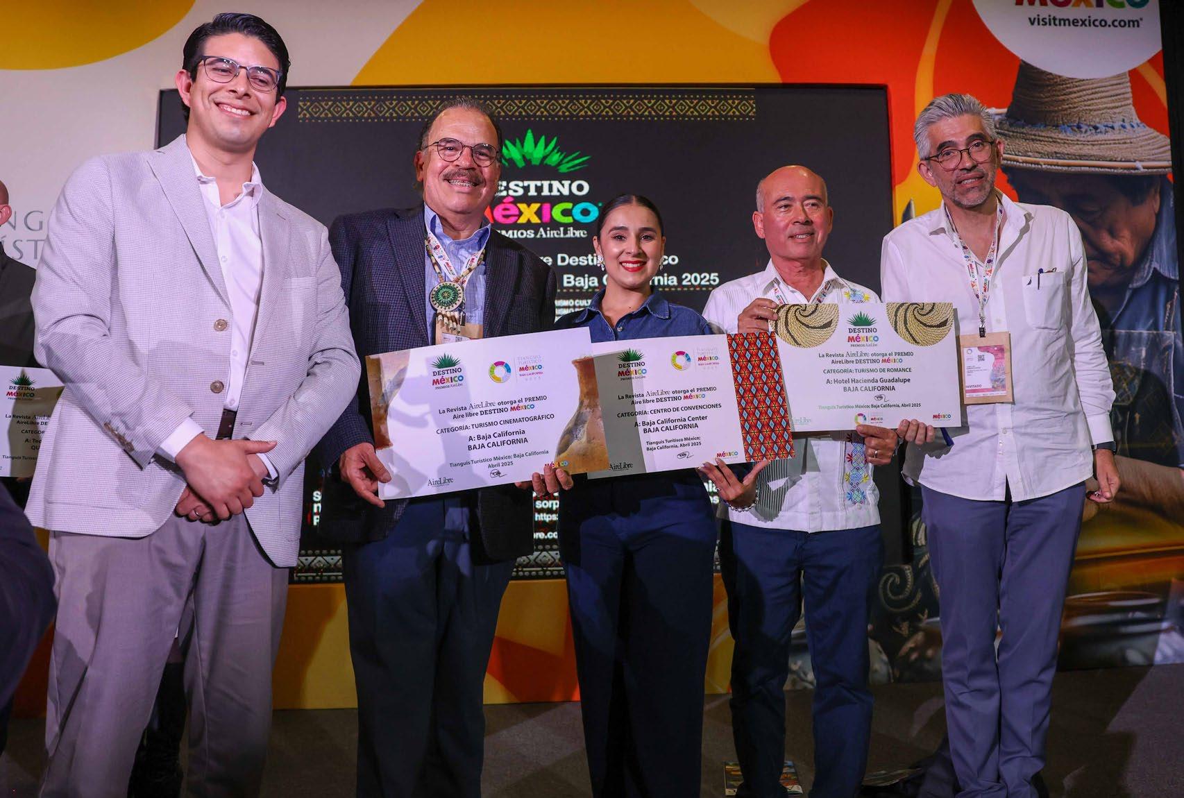 Rosarito, B.C.- El estado de Baja California fue reconocido con tres galardones durante la ceremonia de los “Premios Aire Libre Destino México”, organizada por la revista española “Aire Libre” en las categorías de “Turismo Cinematográfico”, “Centro de Convenciones” y “Turismo de Romance” por el Valle de Guadalupe.