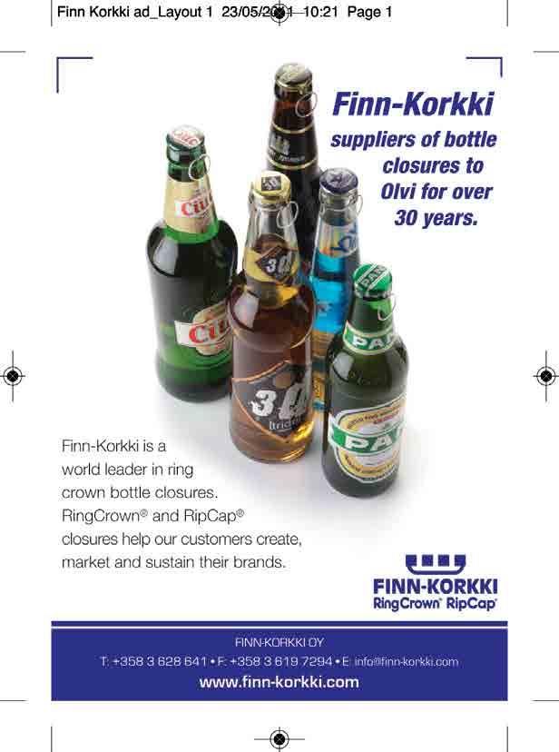 Olvi always wants drinking to be a positive experience. “We market our alcohol products responsibly,” said Mr Heikkalä, “and we don’t use kids under the age of 25 in our commercials.” Olvi’s beers are lagers, and are made from mainly Finnish ingredients, although the Finnish climate means that the brewery in Iisalmi has to import the hops from abroad. Olvi’s most popular beer is Olvi III. This is a pale lager with an alcohol content of 4.5 per cent and was awarded the gold medal in Barcelona in 1991. Olvi Ykkönen, with an alcohol content of 2.7 per cent, is Finland’s most popular mild beer, and has a market share of over 60 per cent in its segment.