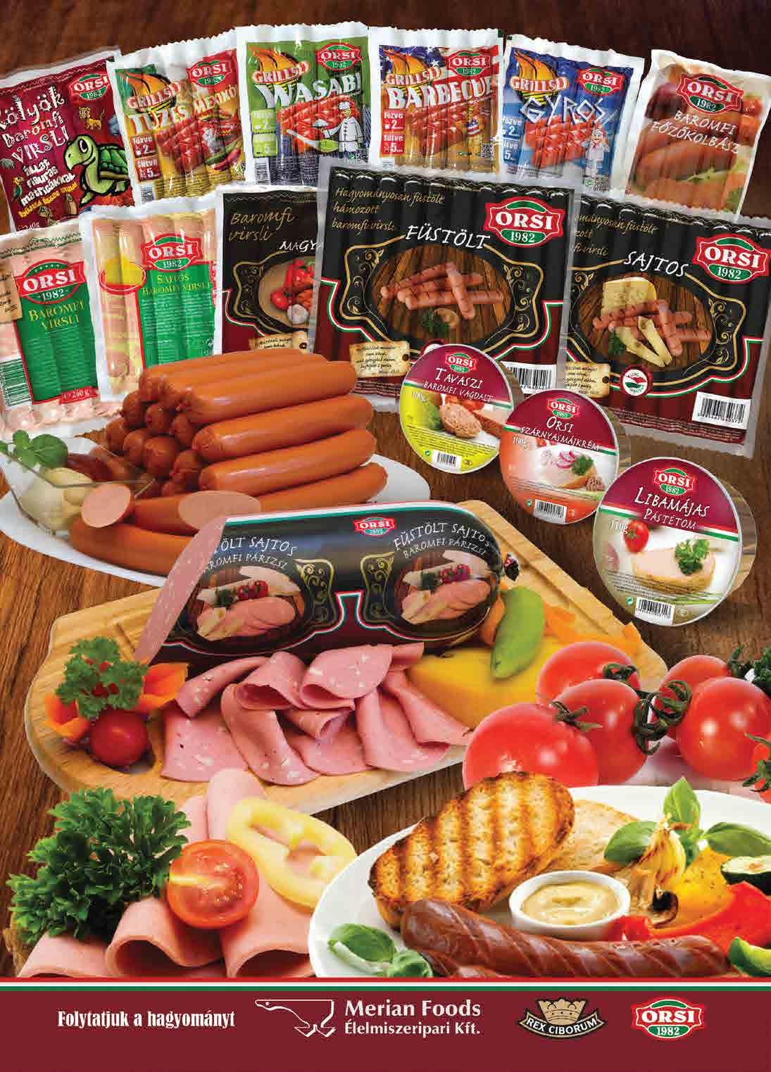Merian was the first among the Hungarian poultry processing companies to introduce branded products. Their Rex Ciborum brand – meaning ‘king’s food, the king of food’ in Latin - is a trademark for goose and duck liver products and these are known as luxury products in both the domestic and international markets. The ORSI product range includes a wide variety of products such as frankfurters, pate, cold cuts, ham products and tinned products, available in many different flavours, sizes and packaging.