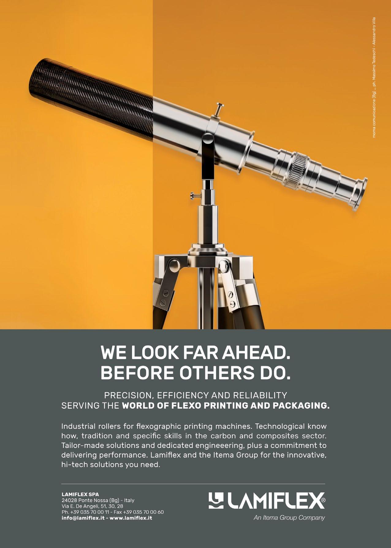 Furthermore, this technology guarantees no contamination at any stage of production and the inks and coatings do not require photoinitiators, which in turn means there are no migration problems. Thanks to the use of Uteco’s patented solution, Thermilox®, production speeds of up to 400m/min can be achieved. n For further details of the Uteco Group’s latest innovative products and services visit: www.Uteco.com