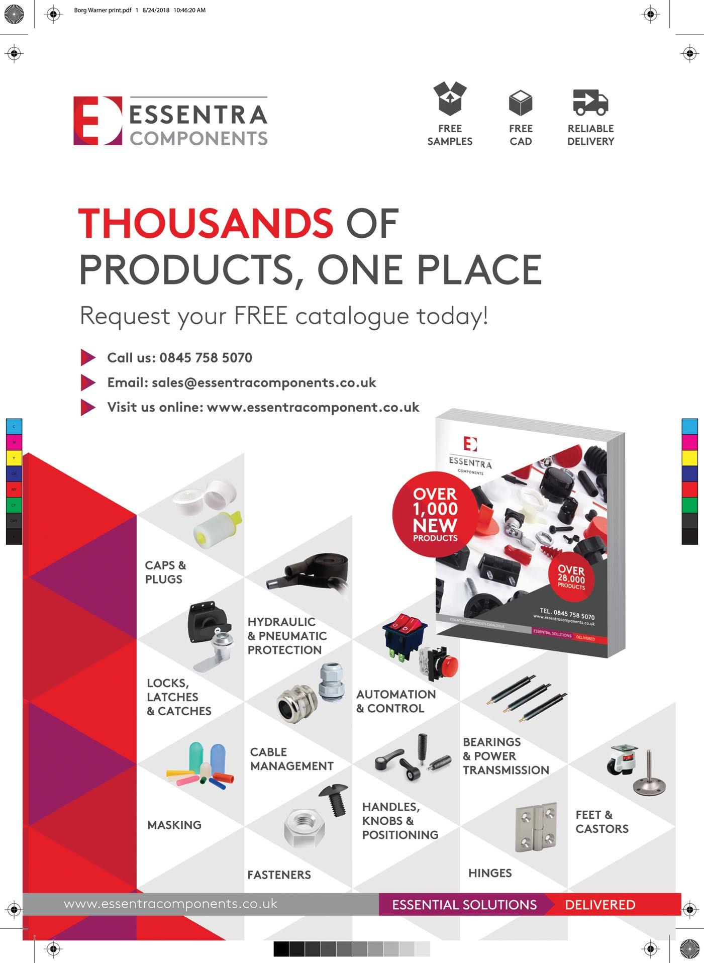 As an innovative designer and manufacturer, essentra Components specialises in caps and plugs, masking products, hydraulic protection, access hardware, cable management, and many more. over one billion parts stocked with fast dispatch and free sampling on most standard products, allowing customers to “try before you buy.”