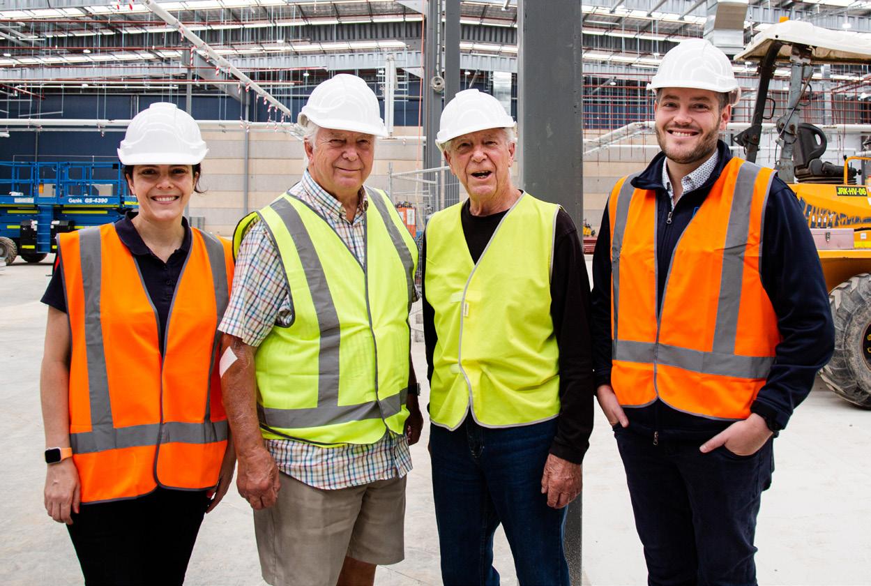 The Meyer Family at new factory construction, excluding Anthony. (L-R) Fiona Jordan (Human Resources, Credit Director), Michael Meyer (Co-Founder), Nicholas Meyer (Co-founder), Alex Meyer (Sales Director)