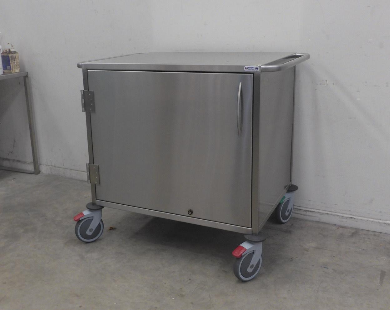 Such trolleys are used to transport surgical instruments from the place they’re sterilised, into hospitals for use, and then back again to be re-sterilised, and sometimes means they’re taken outside the hospital environment.