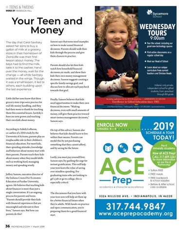 Your Teen and Money The day that Carol Savitsky asked her sons to buy a gallon of milk at a grocery store in their hometown of Zionsville was their first lesson about money. The boys had to find the milk, take it to the cashier, hand over the money, wait for the change — all while Savitsky waited in the wings. Though it was a small lesson, it led to others, each building upon the last experience.