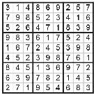 There is really only one rule to Sudoku: Fill in the game board so that the numbers 1 through 9 occur exactly once in each row, column, and 3x3 box. The numbers can appear in any order and diagonals are not considered. Your initial game board will consist of several numbers that are already placed. Those numbers cannot be changed. Your goal is to fill in the empty squares following the simple rule above.