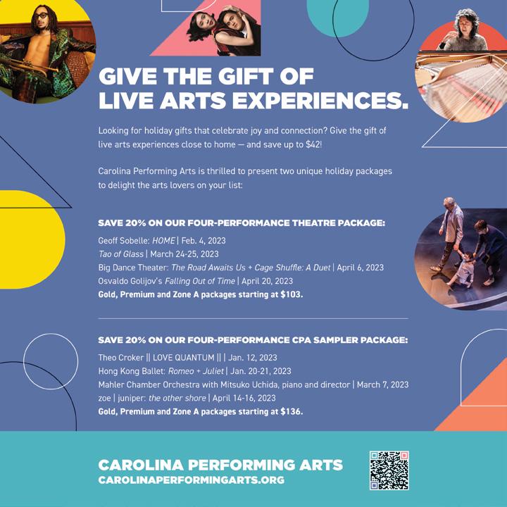 INDYweek.com December 7, 2022 21 Raleigh's Community Bookstore Register for Quail Ridge Books Events Series at www.quailridgebooks.com www.quailridgebooks.com • 919.828.1588 • North Hills 4209-100 Lassiter Mill Road, Raleigh, NC 27609 FREE Media Mail shipping on U.S. orders over $50 EVENTS TUES 12.13 7PM Christopher Ruocchio, Ashes of Man (Sun Eater #5) Let your gift recipient make the decision. We have gift cards!