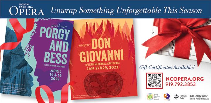 North Carolina Master Chorale: Joy of the Season $50+. Tues, Dec. 13, 7:30 p.m. Duke Energy Center for the Performing Arts, Raleigh.