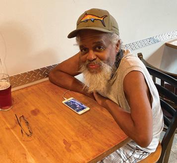 Williams often sat at the end of bar counters, sipping from a glass of his favor ite beer or whiskey while reading or watch ing the soap operas he loved. The more polished spots like Kingfisher, Unscripted, and the Pour House weren’t his scene. He preferred rustic, dark-paneled rooms with dim lighting and a pub-like ambience served up at the Accordion Club, Bull McCabe’s, 106 Main, Bull City Burger and Brewery, and the James Joyce.