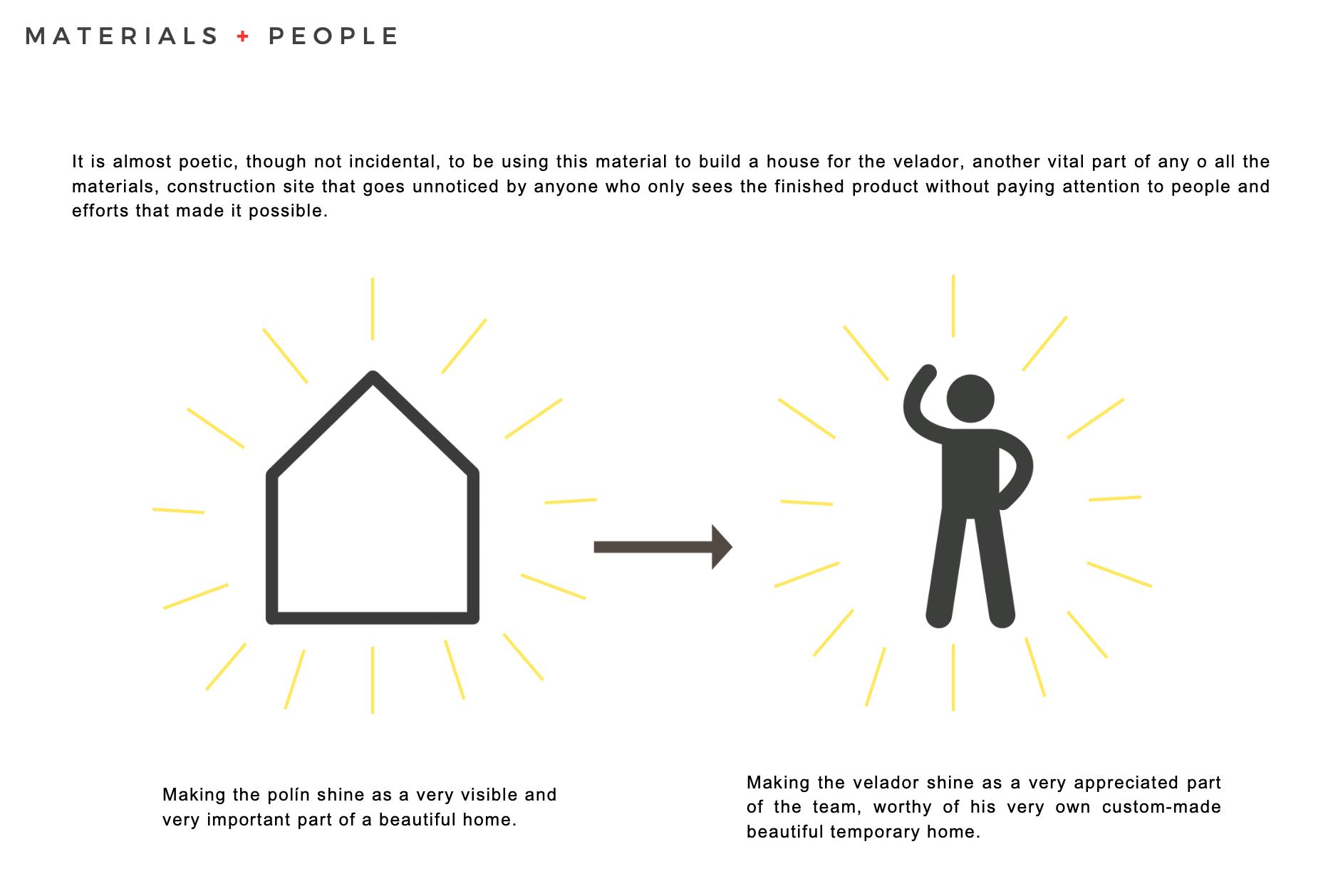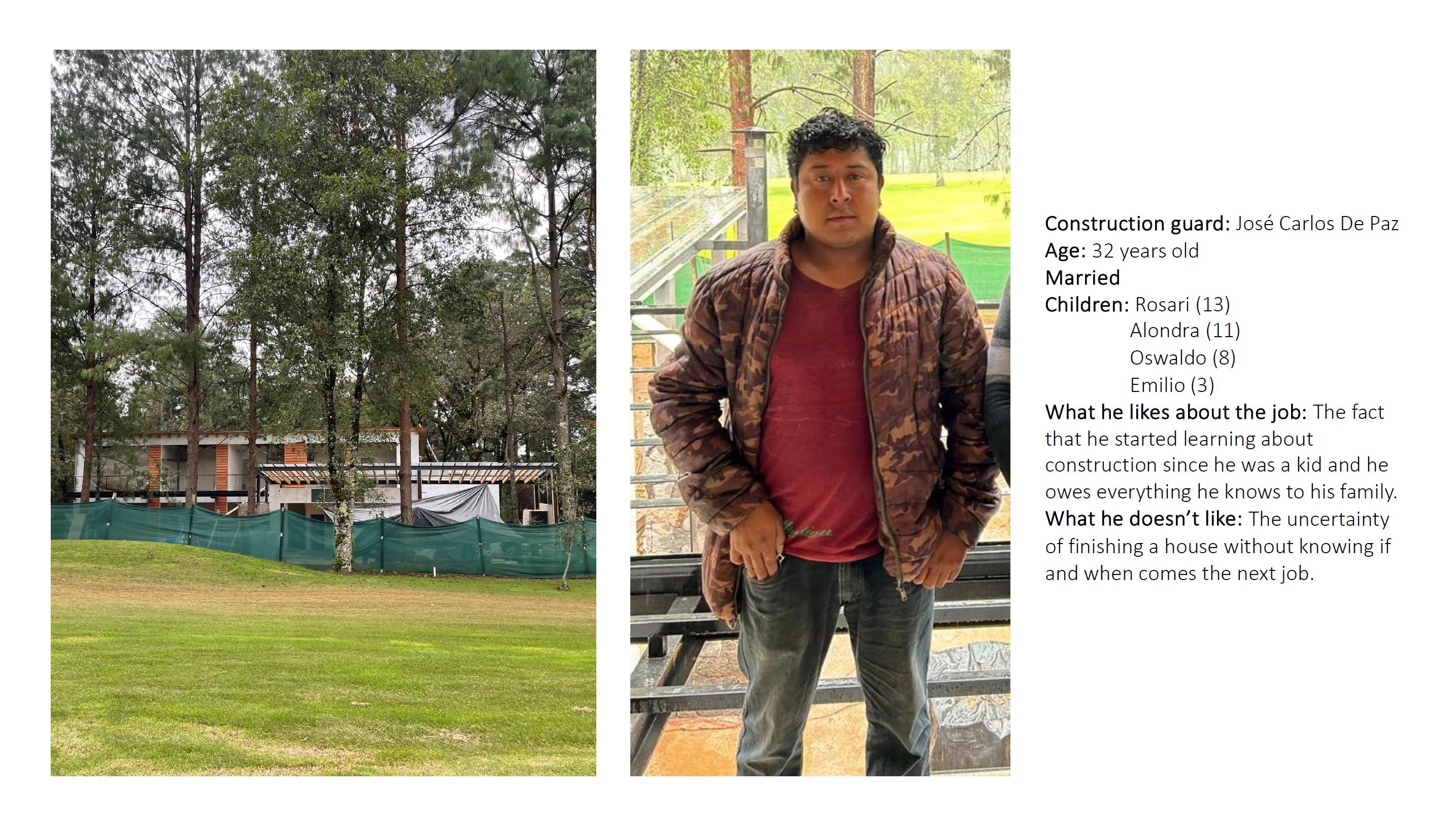 By understanding the universal needs and circumstances that influence all individuals to adapt a space into a home, regardless of space and time constraints, and assuming a holistic, integral, and inclusive design approach, I believe we can help all and every inhabitant of a house achieve, albeit temporarily, a sense of home. Among the early inhabitants of a house, probably no one develops a more intimate relationship with the construction than the “velador”. Furthermore, because in the construction hierarchy, the “velador” is the starting step and also because he spends most of the time alone, his needs rarely rise awareness. Facilitating and humanizing the journey within the journey of constructing home for the “velador” is the starting point of re-thinking ”home”.