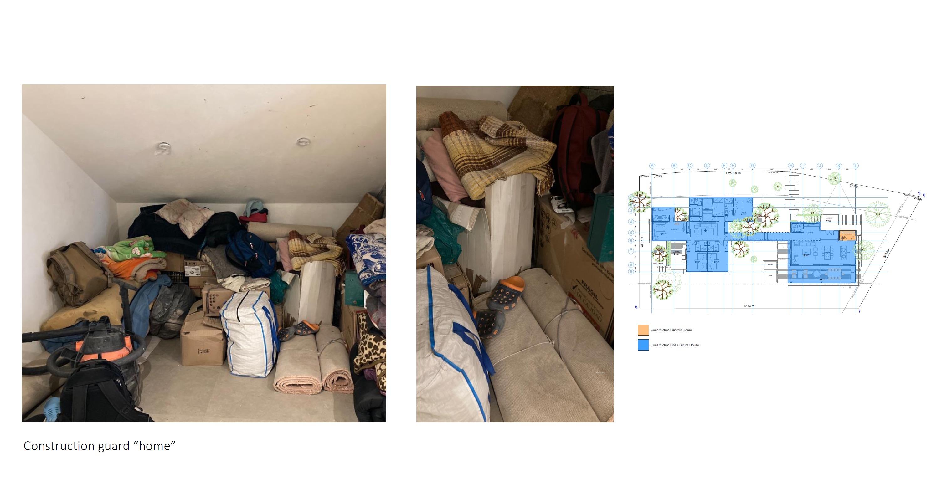 Over a period of three months, interviews and questionnaires were conducted with over 40 construction workers. All individuals who "reside" in a second home - a space they only use for overnight rest when they leave the construction site where they work. For some, these are collective accommodations, while for others, it's an individual dwelling within the construction site, typically referred to as the "velador.”
