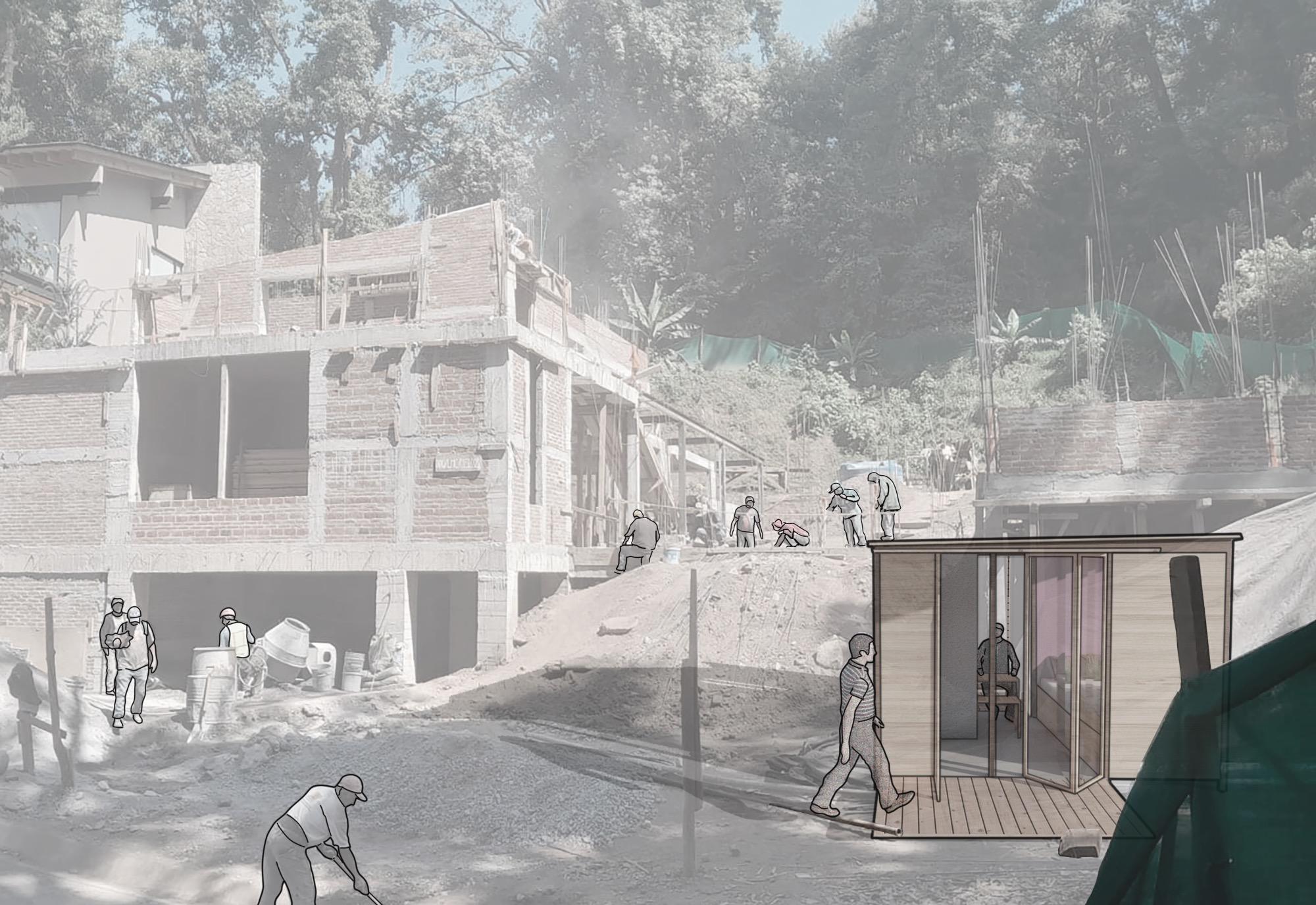 By granting the "velador" the opportunity to shape his surroundings into a true home, whether by seeking solace from the bustling construction site or actively engaging with his fellow workers and the evolving spaces, we create an environment that not only promotes productivity but also enriches his sense of identity and connection to the project. This approach aligns with principles of biophilic design, which emphasizes the importance of incorporating elements of nature and human connection into built environments to enhance well-being and productivity (Kellert et al., 2008).