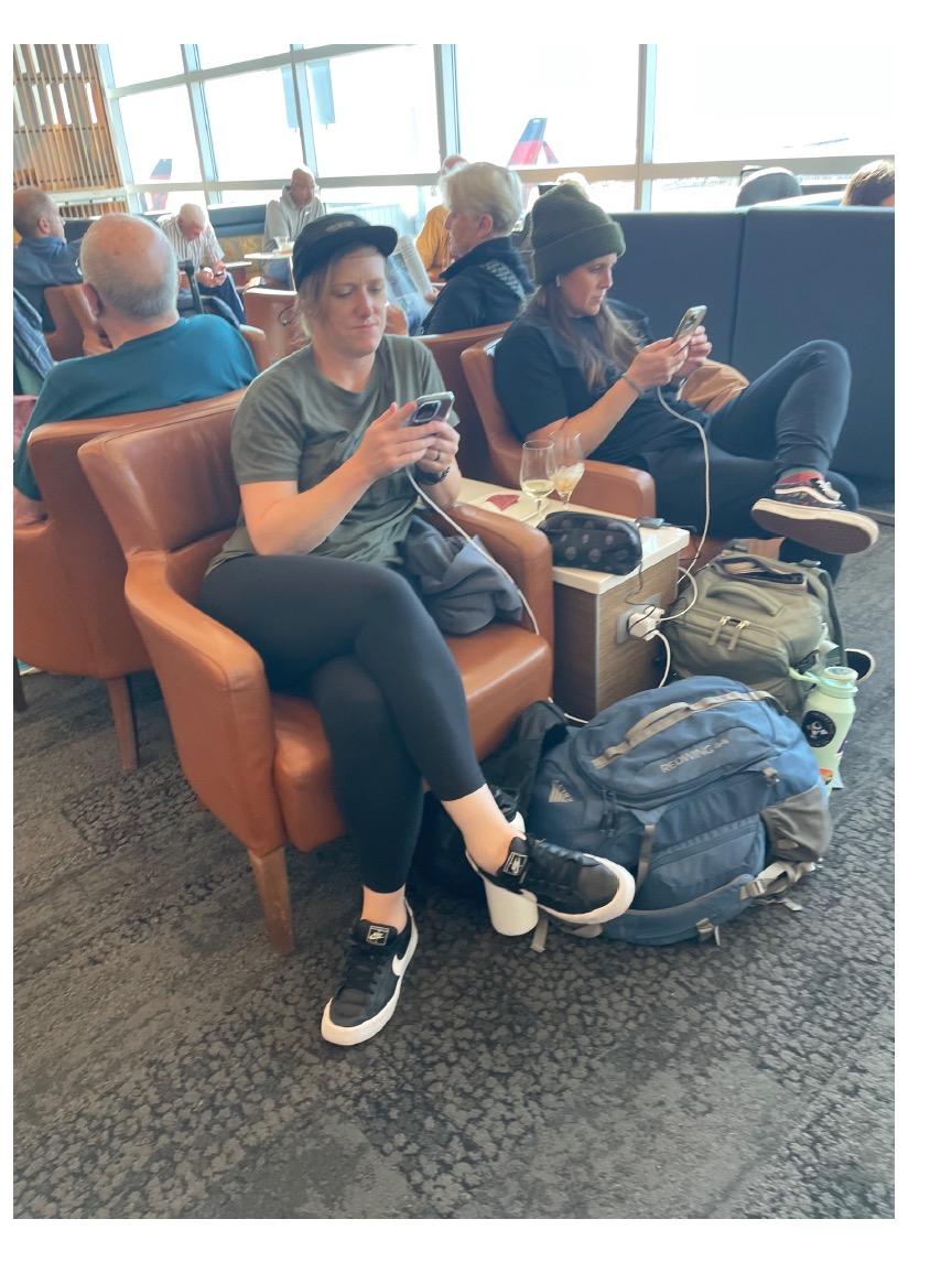 Passengers find themselves adjusting their posture and relying on their personal belongings in an attempt to discover some semblance of comfort. The realization that such adjustments won't be feasible once inside the plane prompts these adaptations. Phones remain in hand, signaling a disconnect from social interaction. The expression on a woman's face vividly communicates her discomfort, encapsulating the shared sentiment among passengers as they navigate the challenges of air travel.