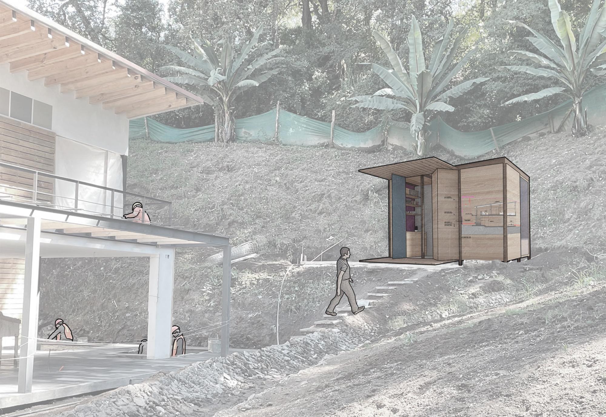 The second client, the focus of this research study, will be the Velador, who will inhabit an individual, temporary dwelling throughout the construction process of the main house. This dwelling will move within the property according to the progress of the construction and the specific needs of process.