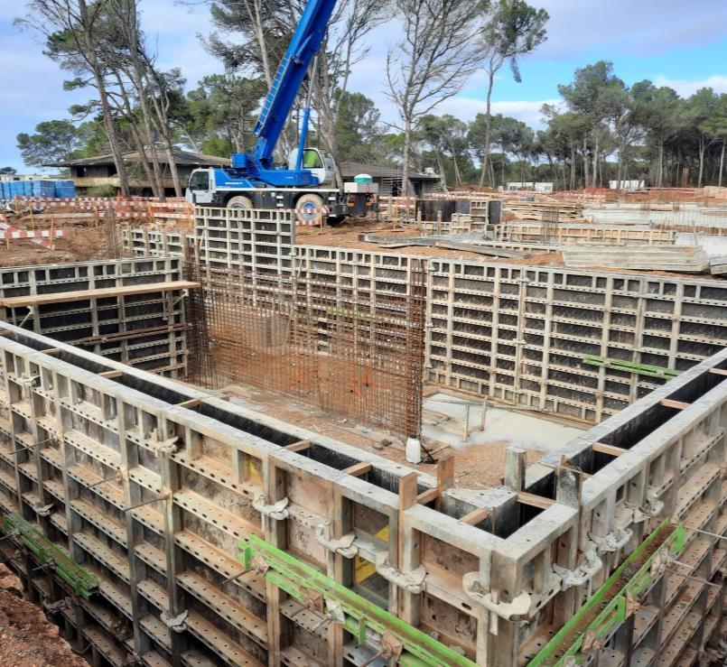 ajuda da empresa Arqueohoje e da HCI, para assim minimizar o impacto no prazo da empreitada. No entanto, relativamente aos Solos Contaminados, apesar dos sucessivos alertas e avisos, o Dono de Obra não tomou as devidas diligências com a antecedência necessária, o que levou a muitas dificuldades na fase de escavação e um consequente atraso na obra A Estrutura do Edifício é composta, ao nível das fundações, por uma parede moldada e uma laje de fundo maciça em betão armado com micro-estacas. Quanto à restante estrutura do edifício, esta é maioritariamente em betão armado, pilares, vigas e lajes com cobiax e cabos de pré-esforço nos