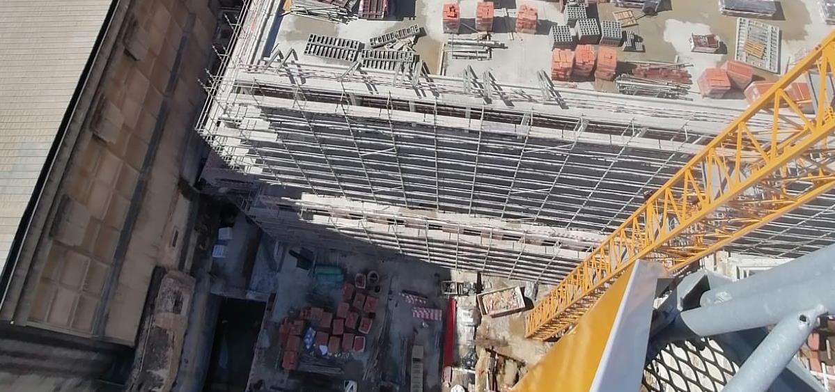 Atualmente estamos a concluir o reforço sísmico, alvenarias e rebocos, continuam os trabalhos de impermeabilização das coberturas e estamos a iniciar a colocação de caixilhos.