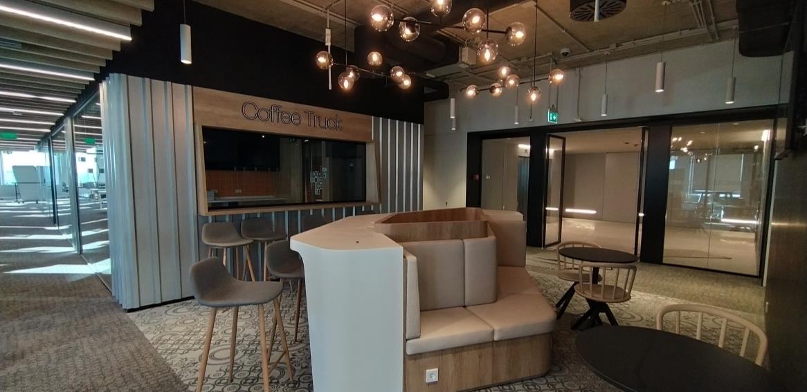 Aquando do arranque da empreitada o projeto do atelier JLCG previa apenas a execução de acabamentos dos pisos de estacionamento e espaços comuns do edifício, ficando os espaços em openspace dos pisos superiores em tosco Com o desenrolar da obra o Dono de Obra celebrou um contrato de arrendamento de todo o Edifício com a consultora Accenture. Assim, teve lugar uma revisão do projeto de arquitetura e uma revisão de fundo de os todos projetos das especialidades, causando inúmeros constrangimentos na execução dos nossos trabalhos.