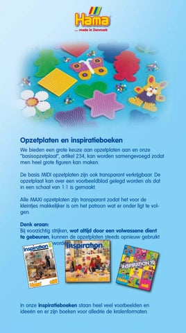 Opzetplaten en inspiratieboeken We bieden een grote keuze aan opzetplaten aan en onze “basisopzetplaat”, artikel 234, kan worden samengevoegd zodat men heel grote figuren kan maken. De basis MIDI opzetplaten zijn ook transparant verkrijgbaar. De opzetplaat kan over een voorbeeldblad gelegd worden als dat in een schaal van 1:1 is gemaakt. Alle MAXI opzetplaten zijn transparant zodat het voor de kleintjes makkelijker is om het patroon wat er onder ligt te volgen. Denk eraan: Bij voorzichtig strijken, wat altijd door een volwassene dient te gebeuren, kunnen de opzetplaten steeds opnieuw gebruikt worden!