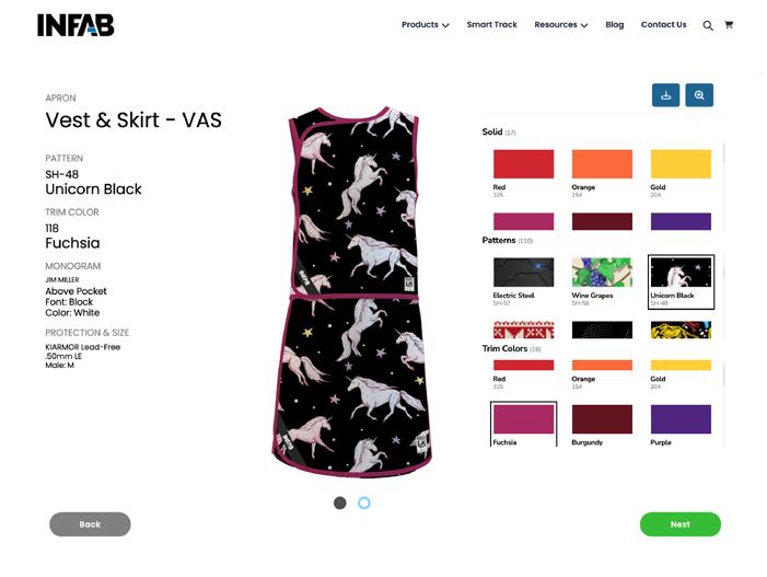 Monograms can be added either in Block Script to any INFAB Aprons or " " " "