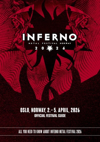 Inferno Metal Festival 2026 takes place April 2–5, 2026. Tickets are on sale now at tickets.infernofestival.net! The 4-day pass includes access to club concerts at smaller venues. We look forward to welcoming you back in 2026! Inferno 2026: Mayhem, Deicide, Enslaved, Cult of Luna, Old Man’s Child, The Kovenant, Kanonenfieber, Tormentor, Samael, Primordial, Incantation, Der Weg einer Freiheit, Auðn, Whoredom Rife, Svarttjern, Múr, 1914, Funeral, Mork, Firespawn, Darvaza, Carnivore A.D., Groza, Sadistic Intent, Hulder, Møl, Nite, Perchta, Vigljós, Katla, Morax, MÍO, Hierophant, Zatokrev, Galge, Bizarrekult, Speedslut, Myr, Nihilvm, Sovereign, Abhorration, Forsmán, Automaton, Ruun, Swartzheim, Arachno, Cavern Deep, Blodknoke, Gaddavír, Euthanasia, Gloombound, Angell, Raumer, Hevn III, Feversea, Homselvareg, Villmark, Hermit Dreams, Voidspire, Riket, Senti, Yvris, SubNoir, and Mortal Fear.