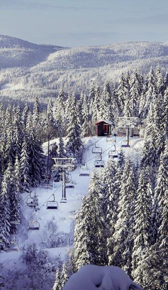 Skimore Oslo Tryvann features 11 lifts, 18 runs, a drop height of 381 metres, a Big Air area with a superpipe, three terrain parks, and a 13-foot halfpipe. The ski and snowboard facility has something for everyone: easy trails in the beginner area, a separate slopestyle line, and wide trails that are perfect for carving.