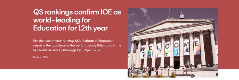 For the twelfth year running, UCL Institute of Education remains the top place in the world to study Education in the QS World Univeristy Rankings by Subject 2025.